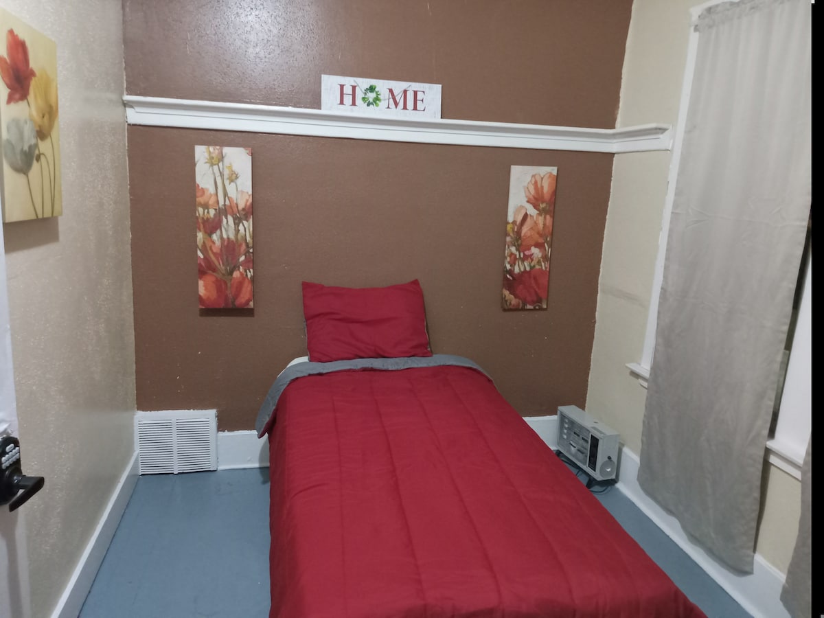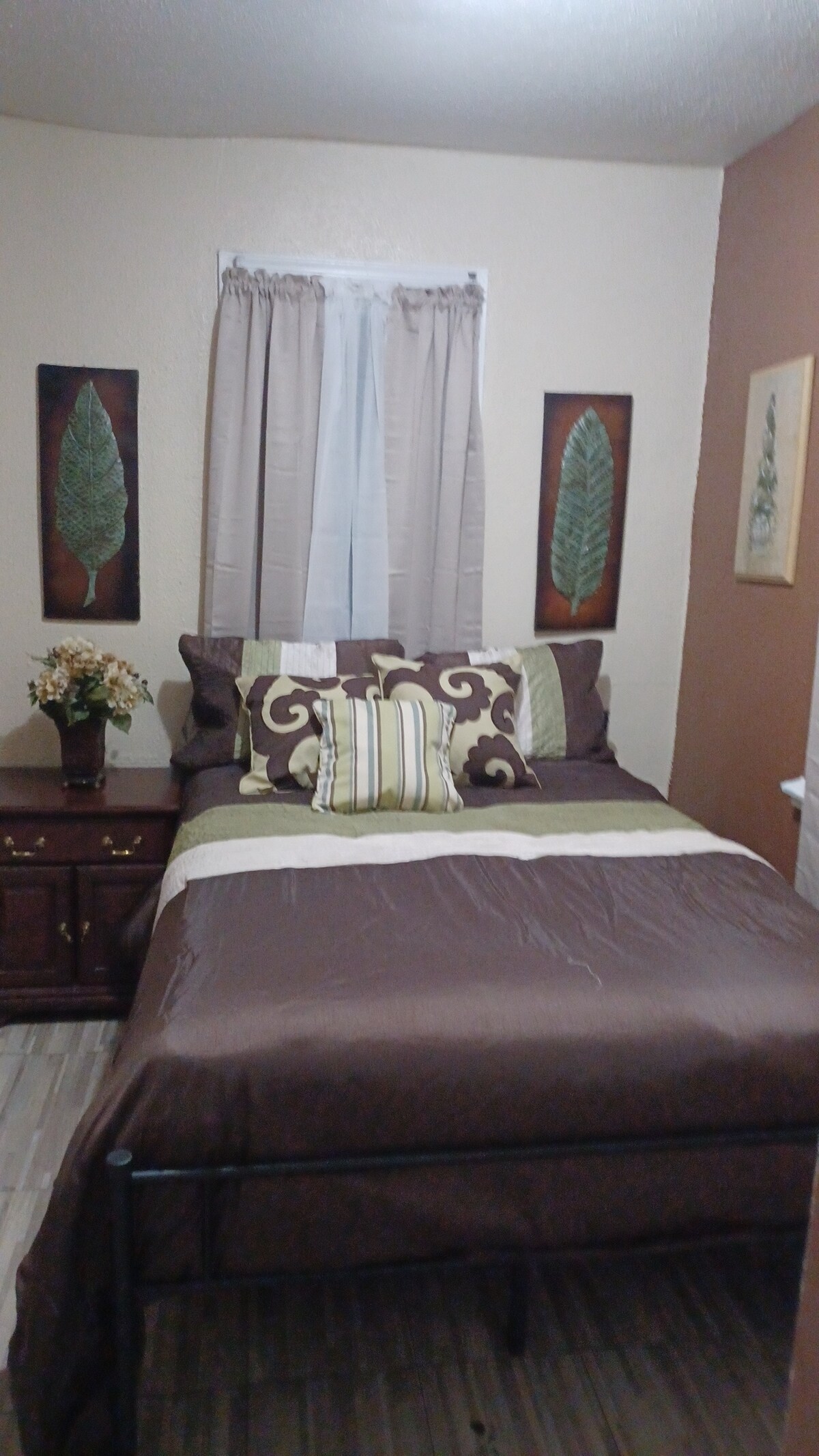 Escape to our cozy 1 bedroom private room(w private bathroom) *Free laundry is available and onsite* for a tranquil getaway. Enjoy plush comforts, stylish decor, and a private patio. Book now for a rejuvenating stay! 420 friendly, 🌈 friendly and pet friendly. there are exterior driveway and ring cameras on the premises