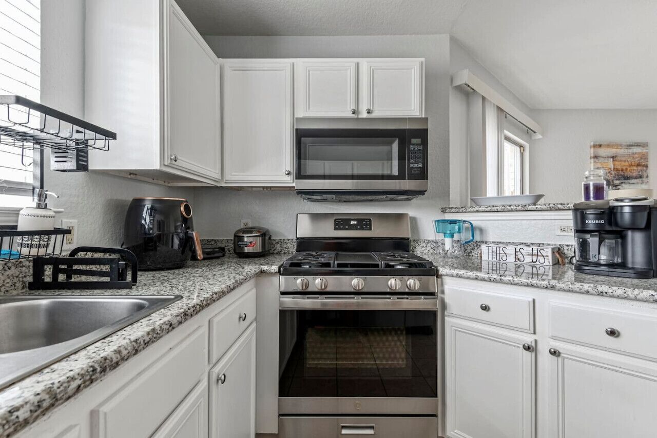 This spacious, fully equipped kitchen feels and looks like grandma's kitchen. Even the most demanding of chefs would enjoy preparing delicious meals using numerous modern appliances. Spacious granite countertops and the kitchen island provide you with plenty of working space.