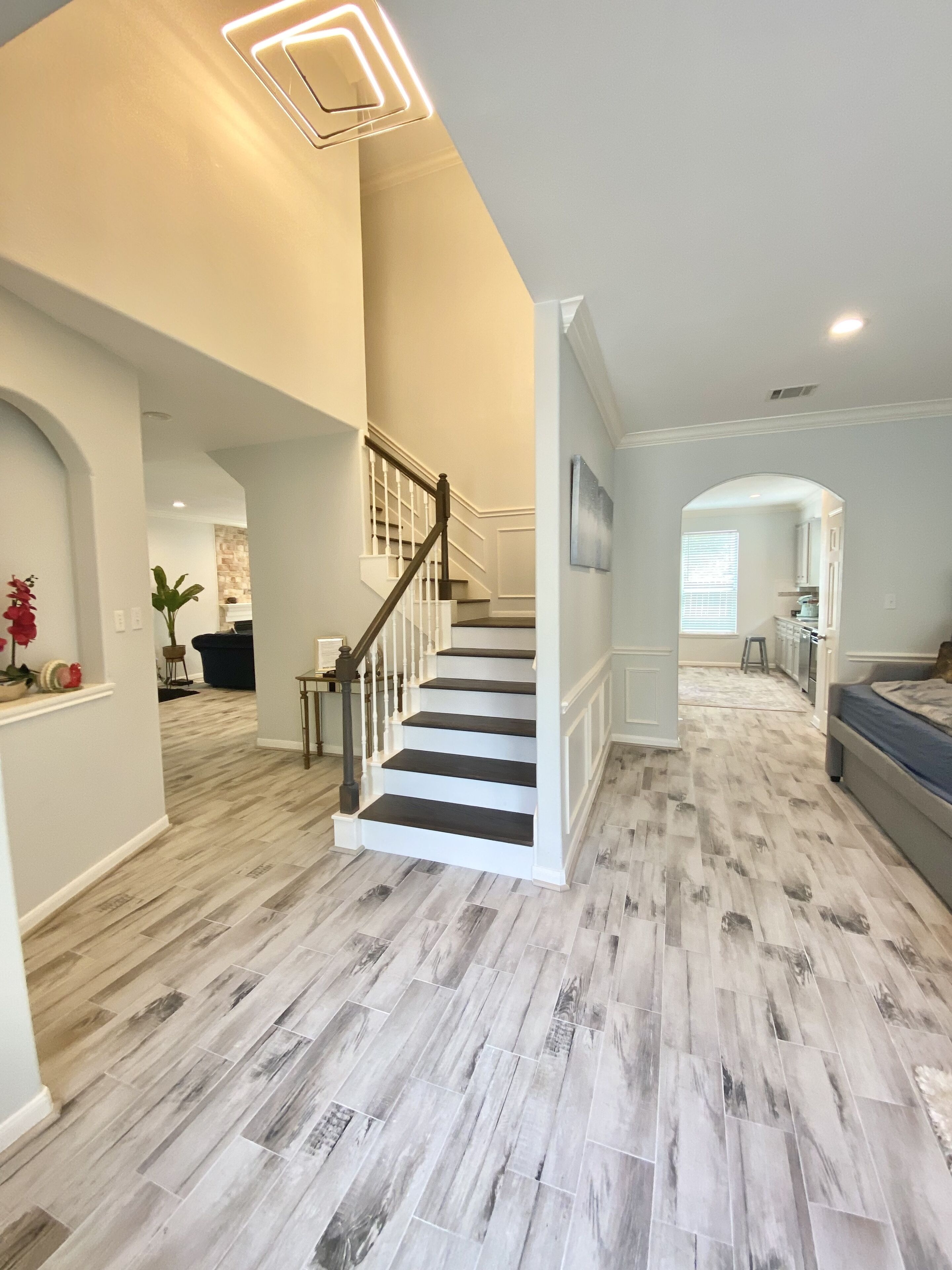 As soon as you step inside, you will be greeted by a blend of comfort, style, and convenience. While decorating this inviting retreat, we have worked hard to create a 2nd home feeling for our guests. Plenty of large windows allow natural light to illuminate the space throughout the day, making the entire house very bright.