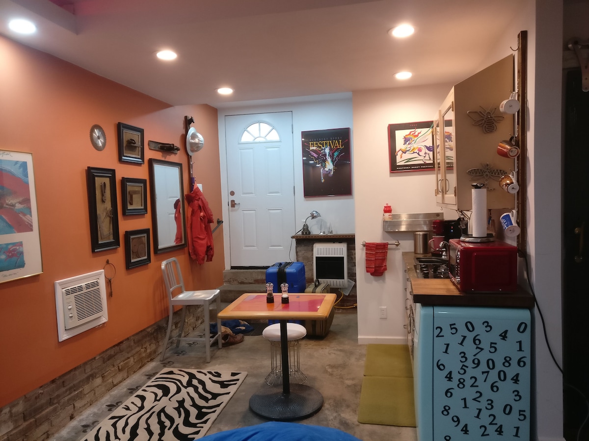 This apartment is former garage/shop in a cottage building in our back yard. Upstairs there is another apartment but it's quite well sound insulated. It has window AC installed in a wall and gas heater. It has little sunlight but very good led and mood lighting. To get to it you have to unlock backyard gate and walk entire length of our backyard. Location is very close to downtown, 10 minutes to medical complex and may be a good choice for somebody that has to sleep during the day.