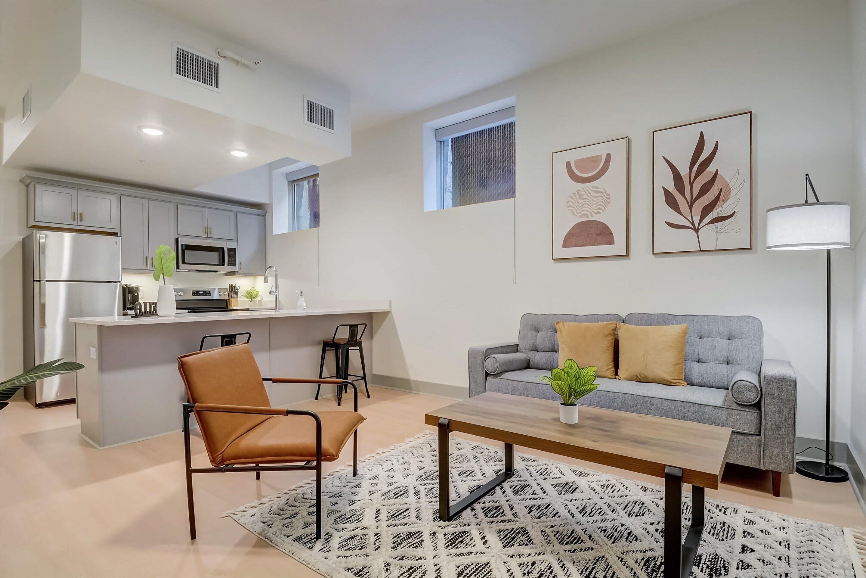 Experience the ultimate blend of comfort, convenience, and modern living in our fully furnished 1-bedroom apartment, located in the heart of downtown Louisville. Designed with professionals in mind, this space features a plush queen-size sleigh bed, a fully stocked kitchen with stainless steel appliances, and a Keurig coffee maker for your morning boost.