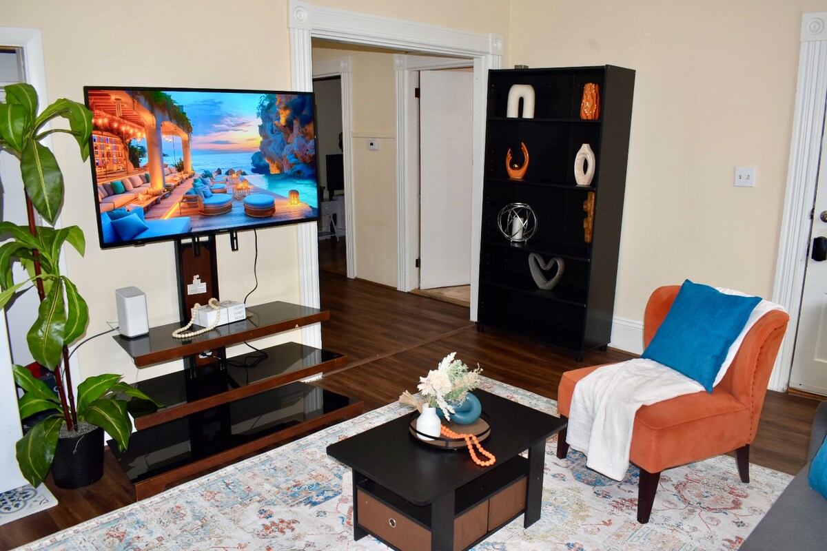 This apartment was fully-renovated in 2022 with modern electrical, windows, plumbing, a beautiful new bathroom and an updated kitchen. The large bedroom features a spacious closet, dresser and king-size memory foam mattress with pillow top. The smaller bedroom has a queen-size memory foam bed, storage cubes, and closet.