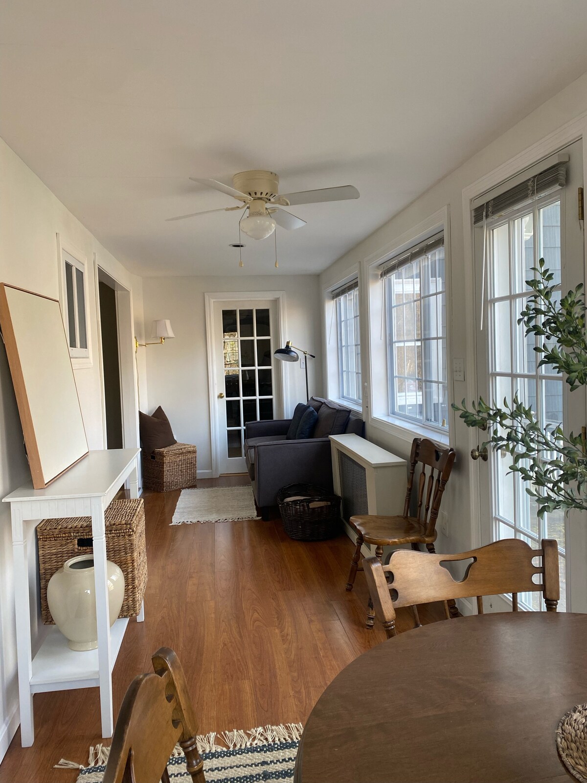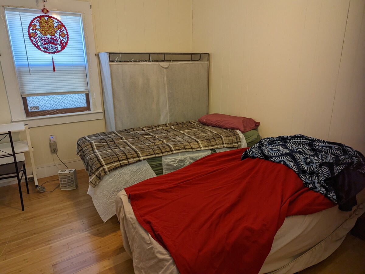 This is the largest room in the house (and my favorite). It's a corner room with lots of light all times of the day. The bed has a Tuft & Needle queen mattress (super comfy) and the floors are charming 1910 pine planks that are original to the house. Closet, dresser, writing desk, all in bedroom. A steam radiator is located in the room, and window A/C unit is available June-August. Excellent for remote work or a relaxing place to call home for a few weeks or months.