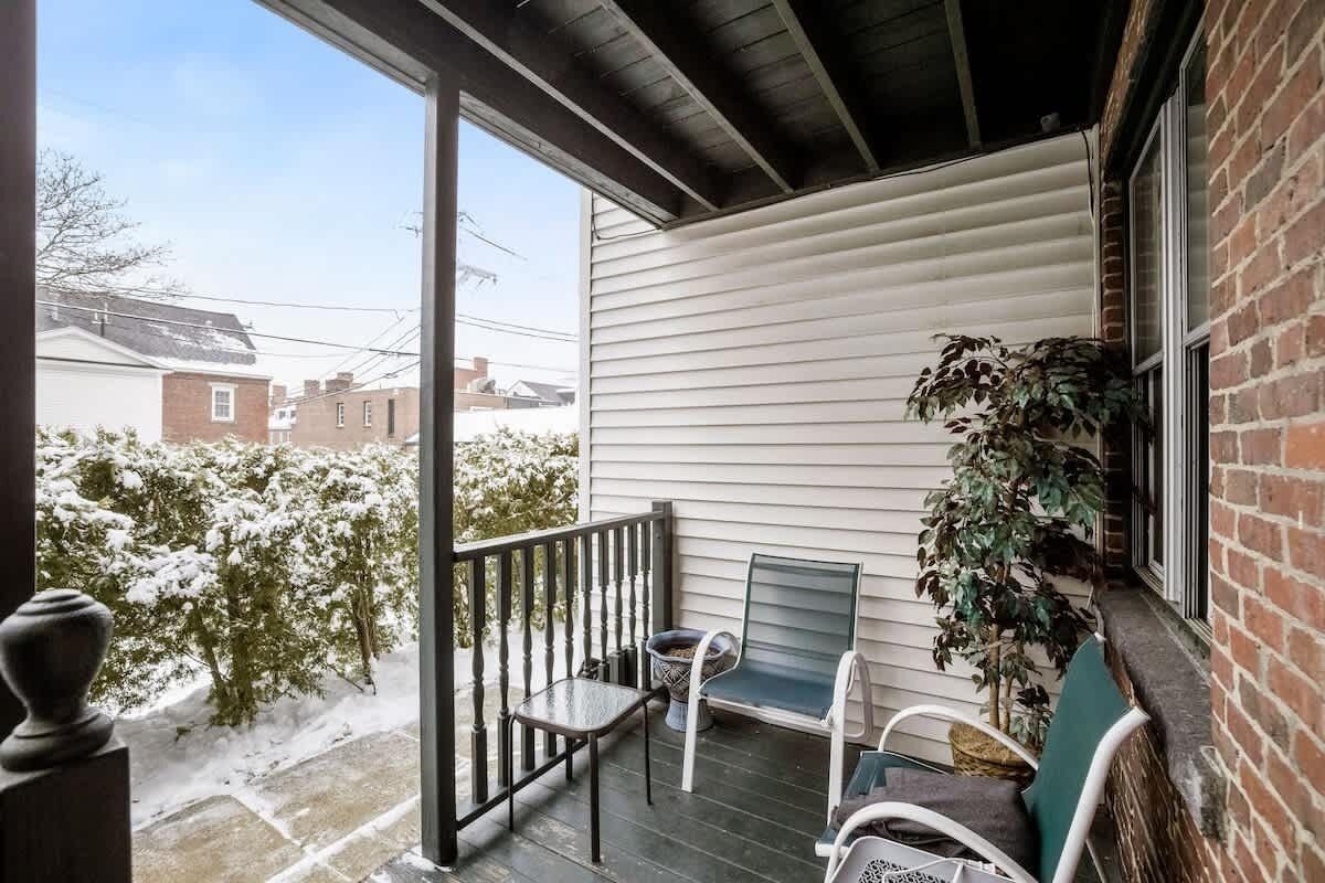 We love this historic home, but the floors are squeaky and there are lots of stairs! One parking space is available in the small parking lot in front of the home. It's a tight squeeze, but does fit a car or small truck. Extra or oversized vehicles must be parked on the street. Security cameras are located around the exterior of the property, and in the basement laundry room. There are no cameras in the apartment. No cats allowed. No smoking/vaping of any kind is allowed on the property.