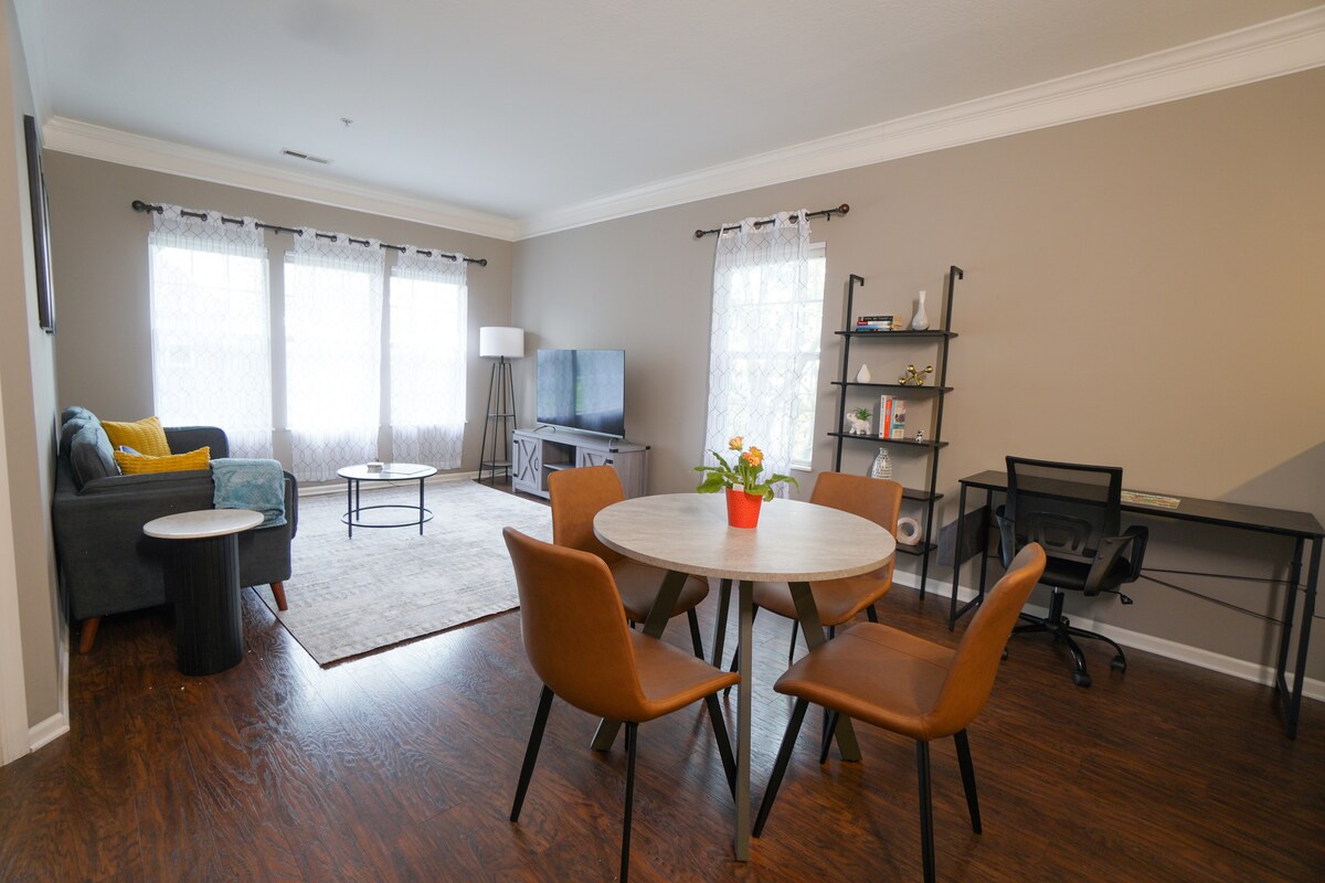 Enjoy the comfort and convenience of premium furniture, 1st-floor location (no steps!), walk-in shower, patio w/nature views, and resort-style amenities — all lovingly designed for stays of 30+ nights. Perfect for relocations, work assignments, or medical travel to Columbus.