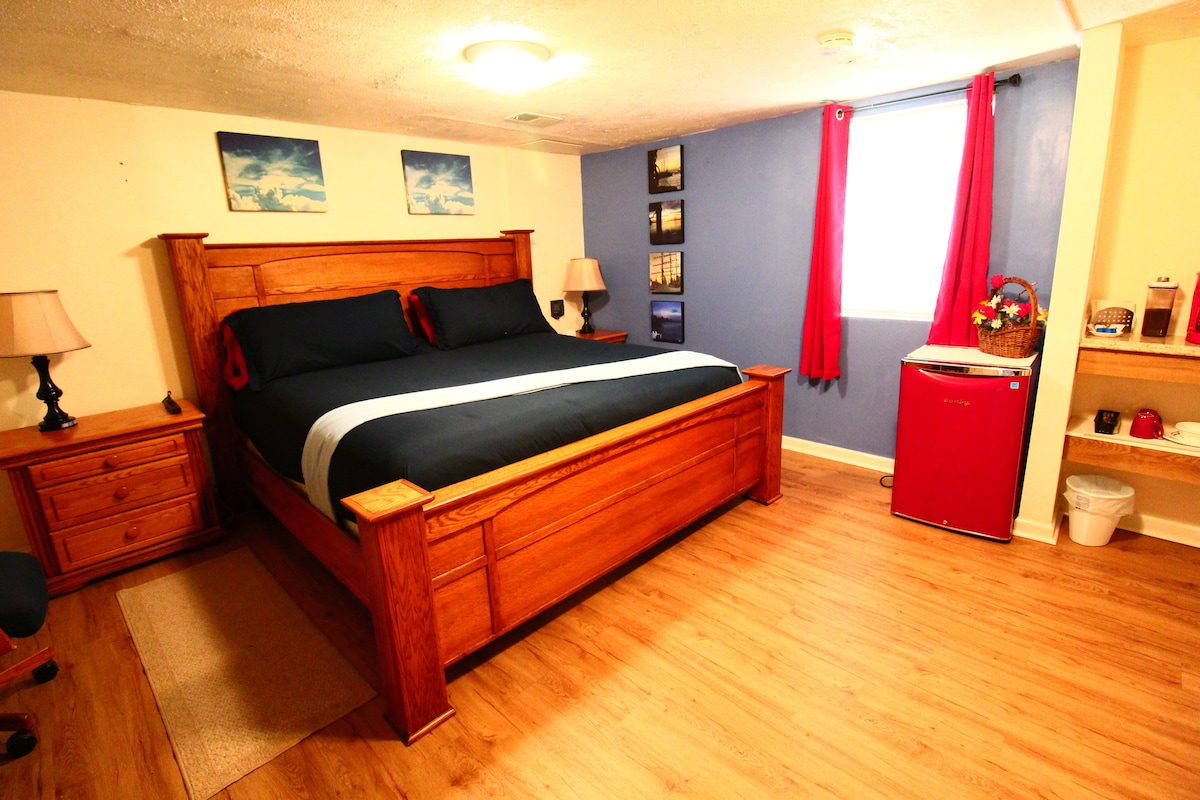 - "Everything was lovely, will use again " - "I had a very pleasant stay! The space was clean, comfortable, and conveniently located close to downtown. The host was responsive and available whenever I had a question. Just something to note — it’s a basement unit, and you can occasionally hear some noise from upstairs, especially in the evenings, but it didn’t impact my overall experience. I’d definitely recommend it!" - "Nice facility. No control of a/c but nice and cool."