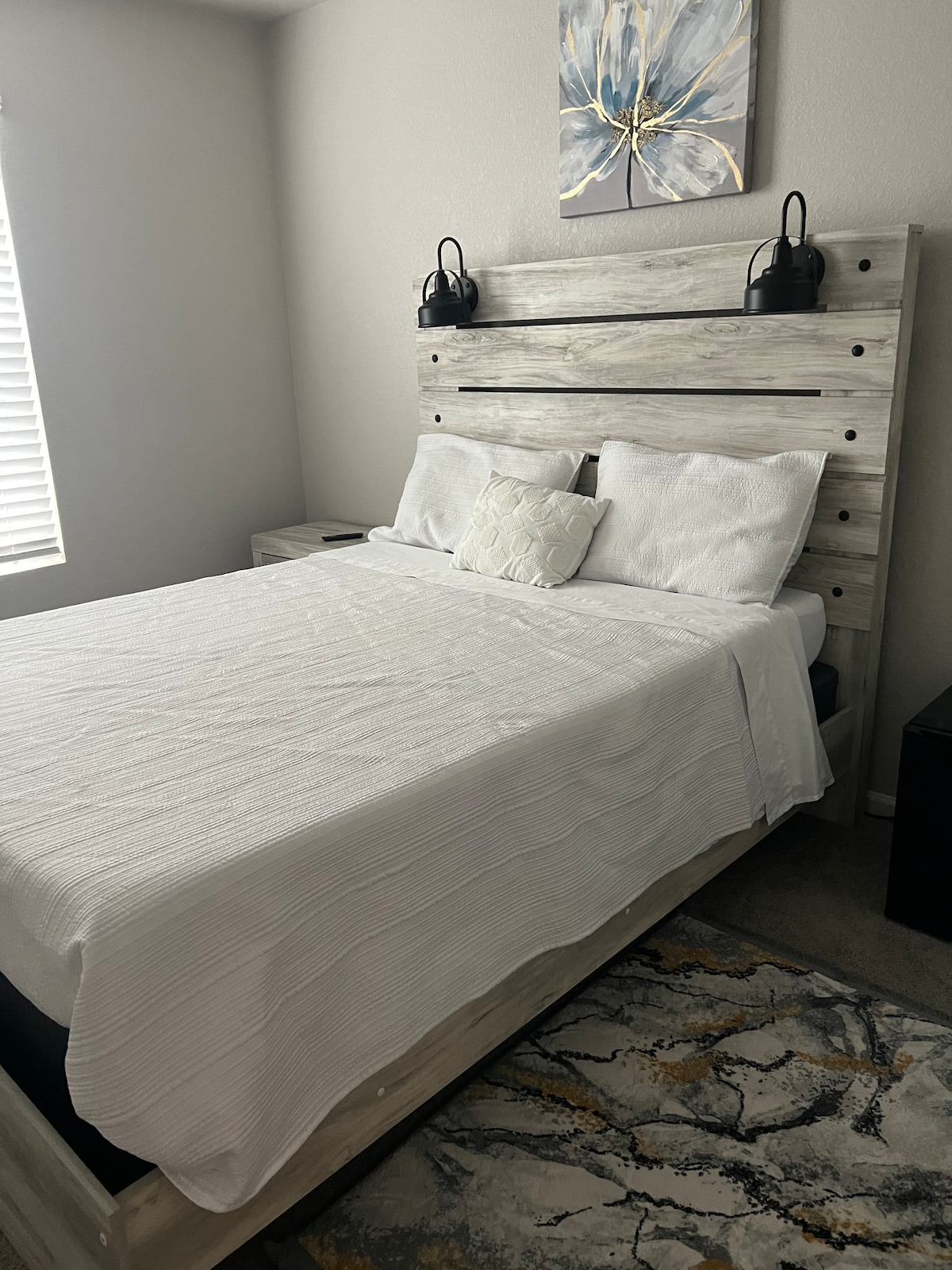 This listing is for 1 bedroom (room E on 1st floor) that shares a bathroom with the upstairs rooms. Heading to the upstairs, you will find the full bathroom and laundry room. There are extra pillows and room darkening shades to ensure maximum comfort for your sleep.