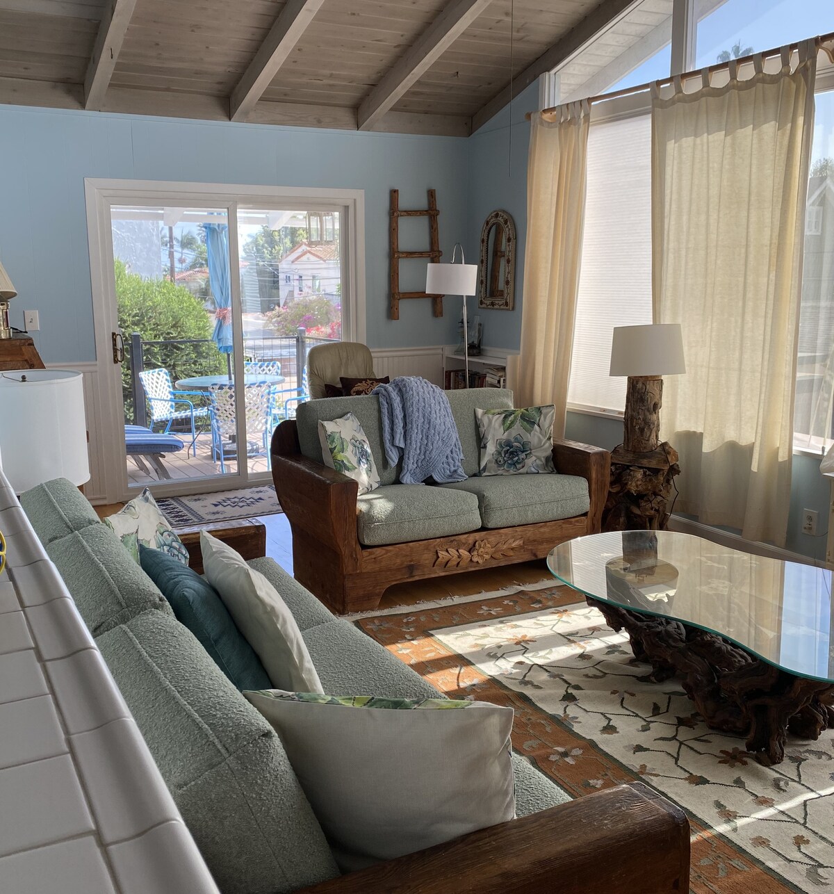 Please note that East Beach Vista is the front unit of a duplex and only street parking is available. As is typical with many Santa Barbara homes, this unit does not have A/C. Because of the neighborhood park and close proximity to the street, some noise is to be expected. Laundry facilities are shared with the back unit.