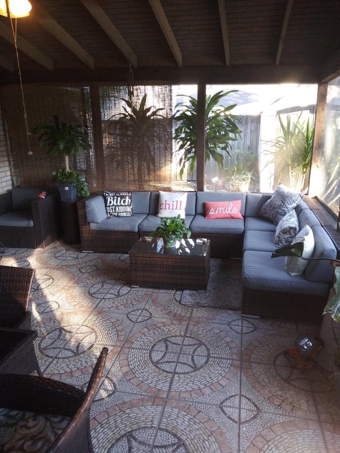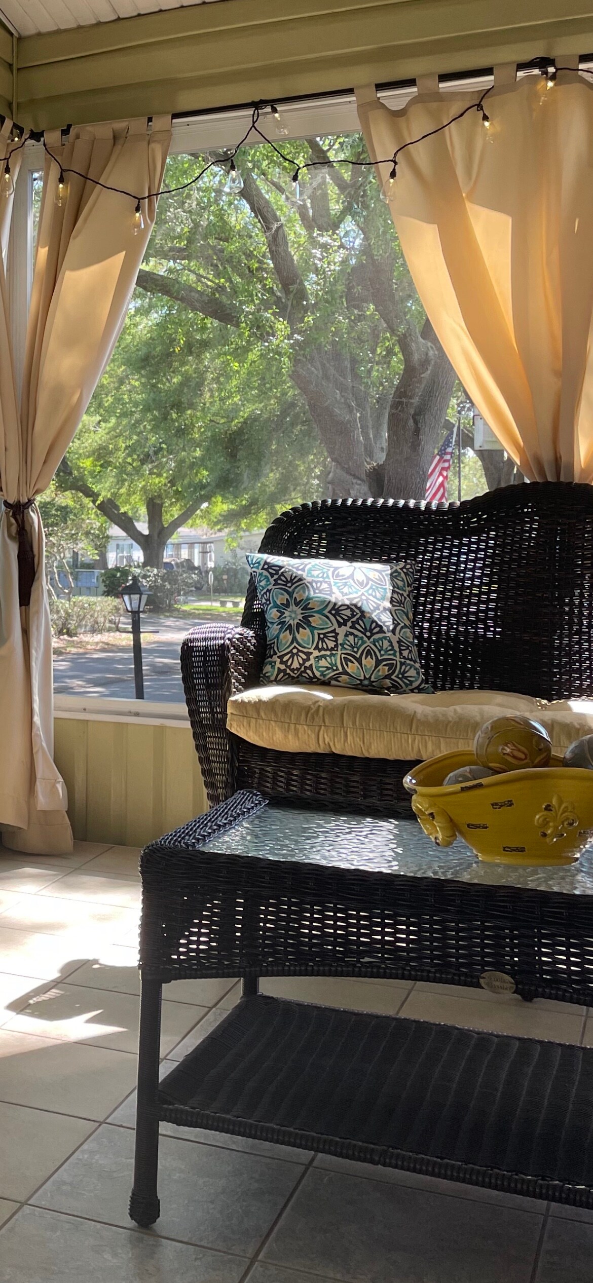 OUTDOOR LIVING: Screened-in patio, dining area, lounge chairs