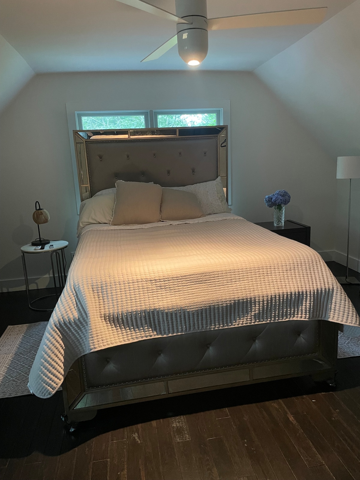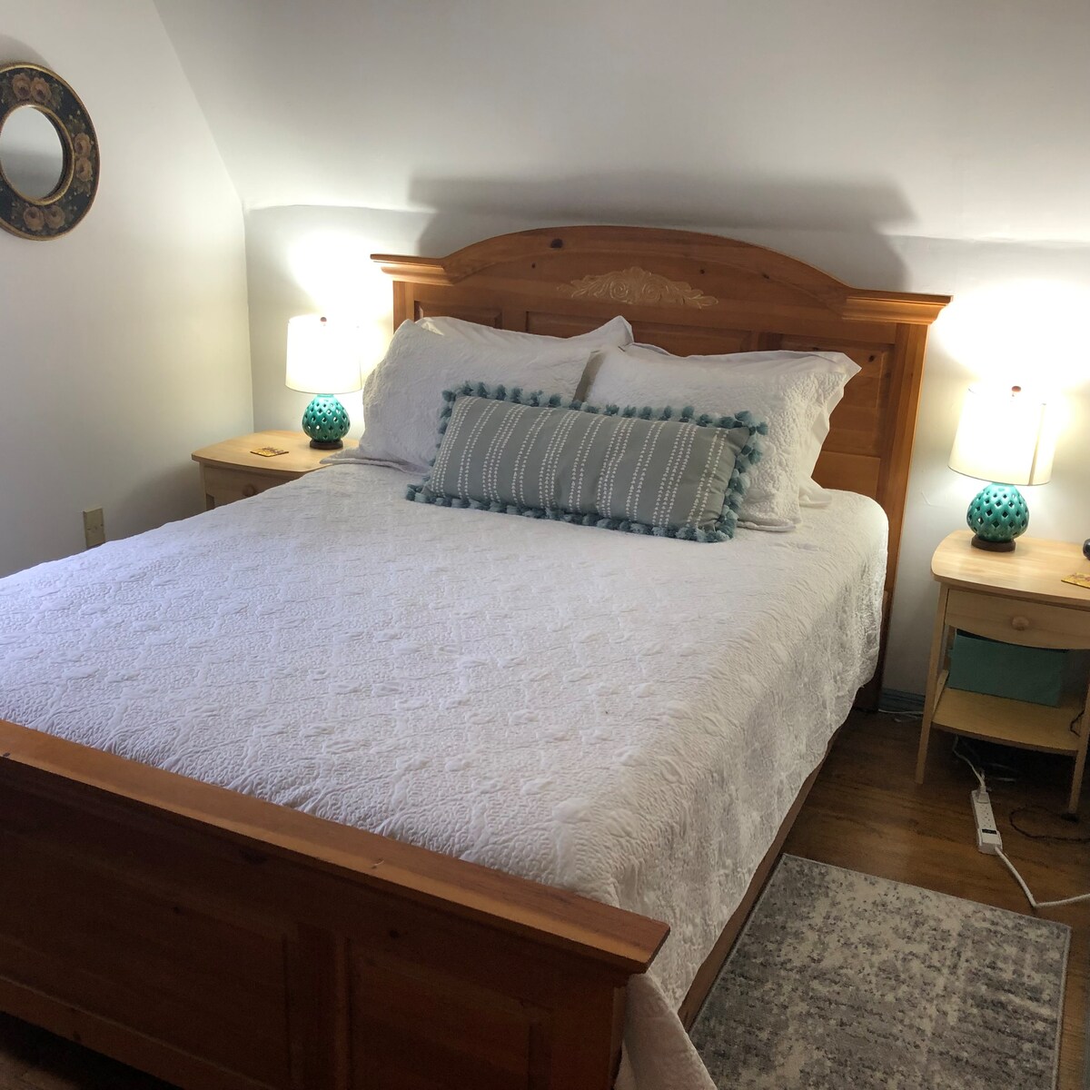 Clean, bright, and comfortable private bedroom with private bathroom.