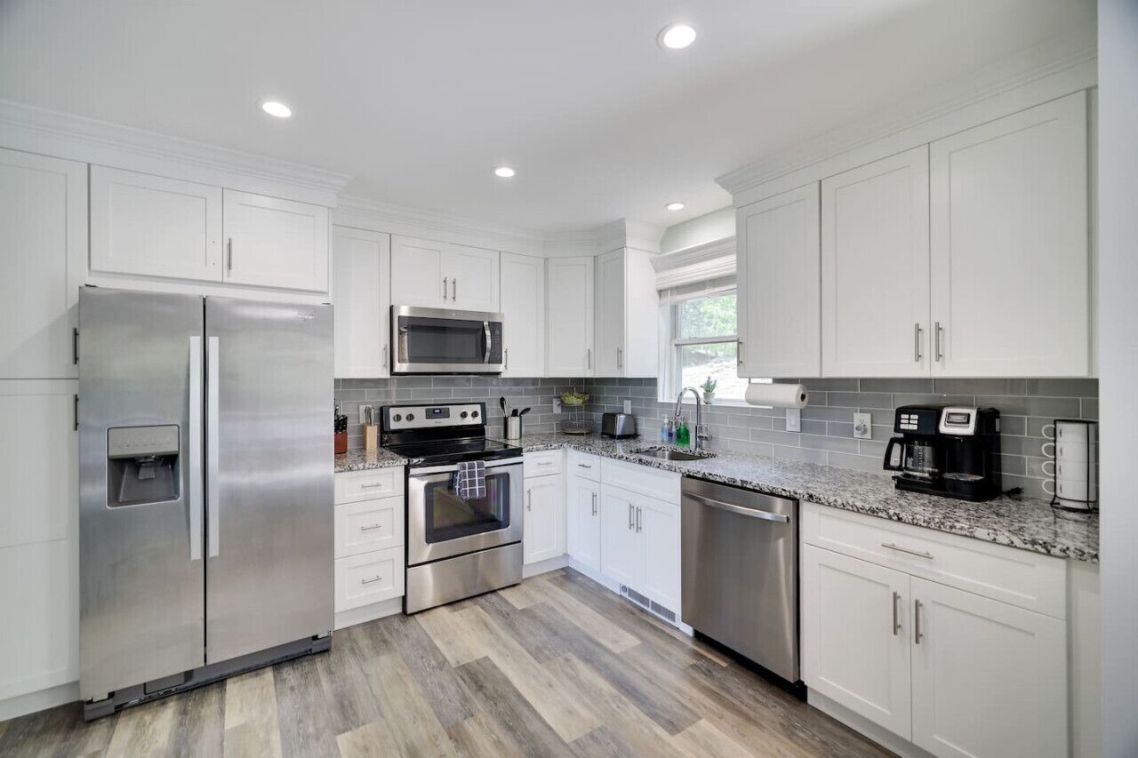 The first floor has an open floor plan connecting kitchen, dining room and living room. You can relax in the living room next to the fireplace watching TV, or stream through your favorite player, or listen to your favorite tunes .
