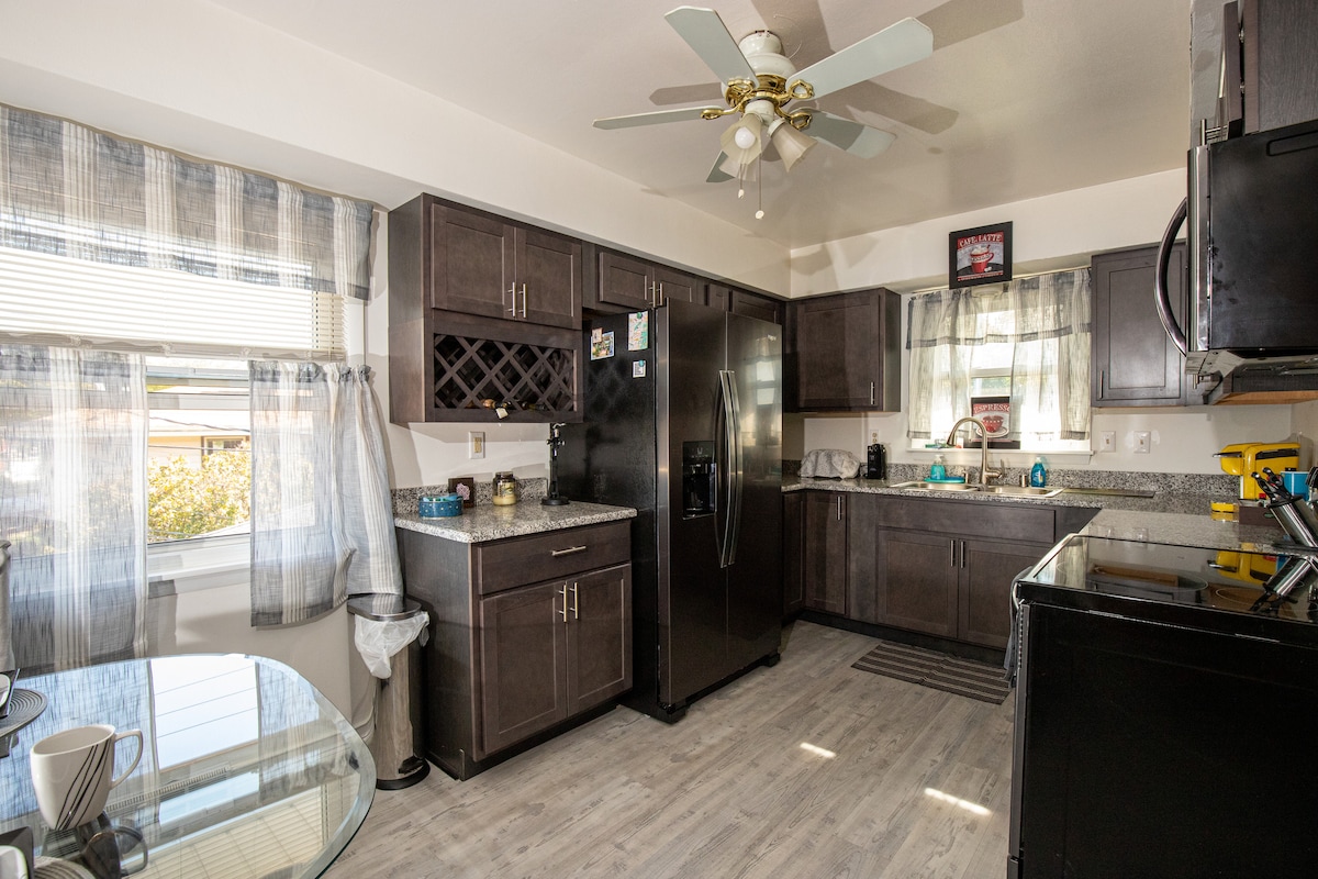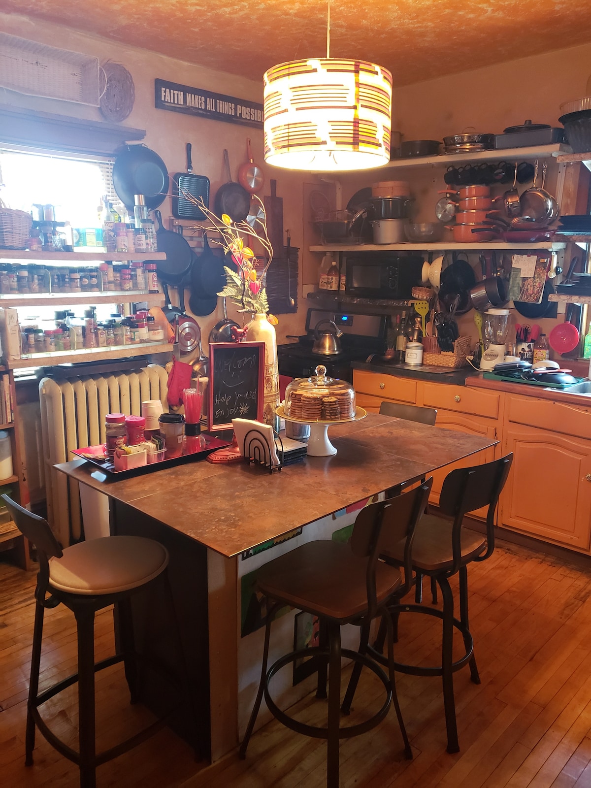 there is designated cabinet and fridge space if you'd like to keep some fresh food and do some simple meals here; the bathroom was completely updated recently and has extra deep tub/shower; interior and exterior of home has many nice spots to relax; lots of extra details to help you feel comfortable and nurtured.