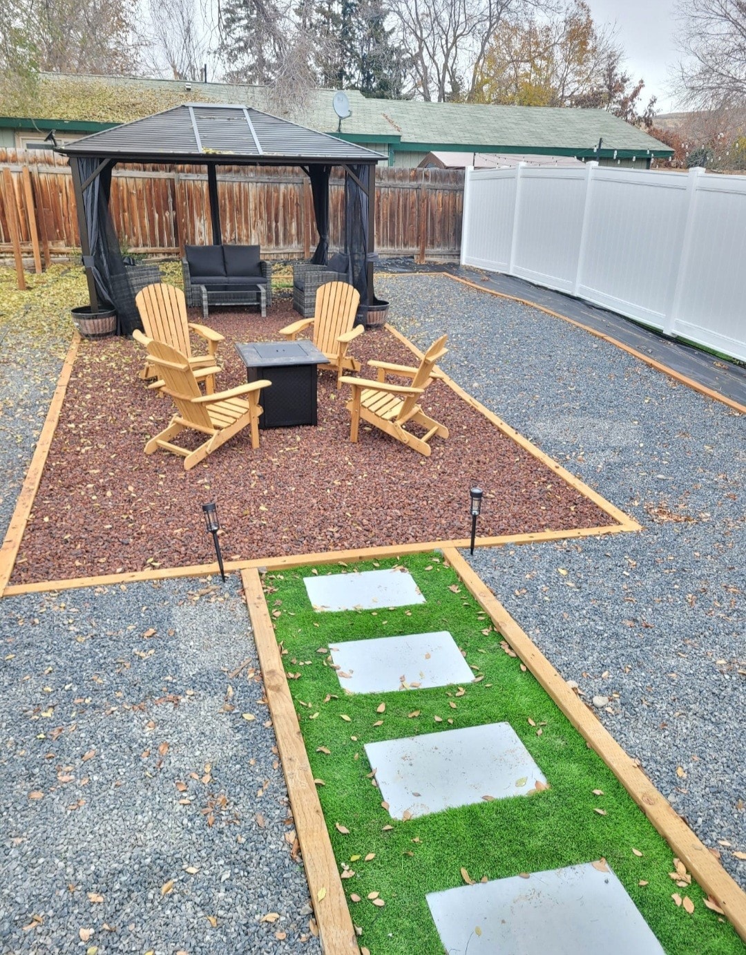 Our fully fenced backyard offers a solid blend of relaxation and fun! Unwind and rejuvenate in the inviting hot tub, surrounded by the tranquility of the mountains. The grassy area provides ample space for outdoor activities and play. Enjoy quality time under the bistro lights with loved ones in this delightful outdoor setting.