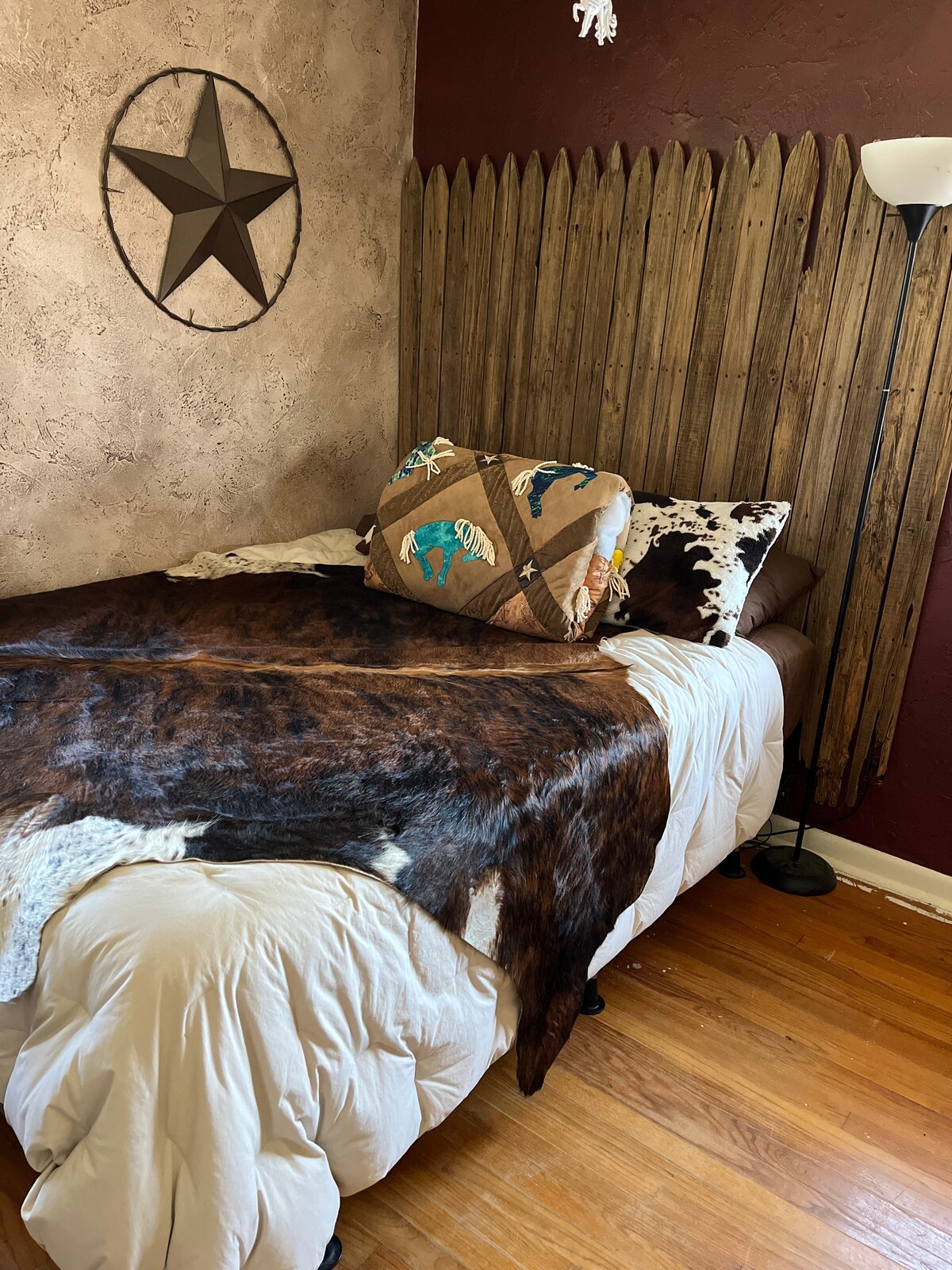 Each bedroom is decorated in it's own unique theme. We have the country-John Deere themed master bedroom with ROKU TV and comfy queen size bed and private bath. Then there is the Train room to honor the El Reno history as a Rock Island railroad hub, with a full size bed. The final bedroom has an a twin size trundle bed and is dedicated to the music of our lives.