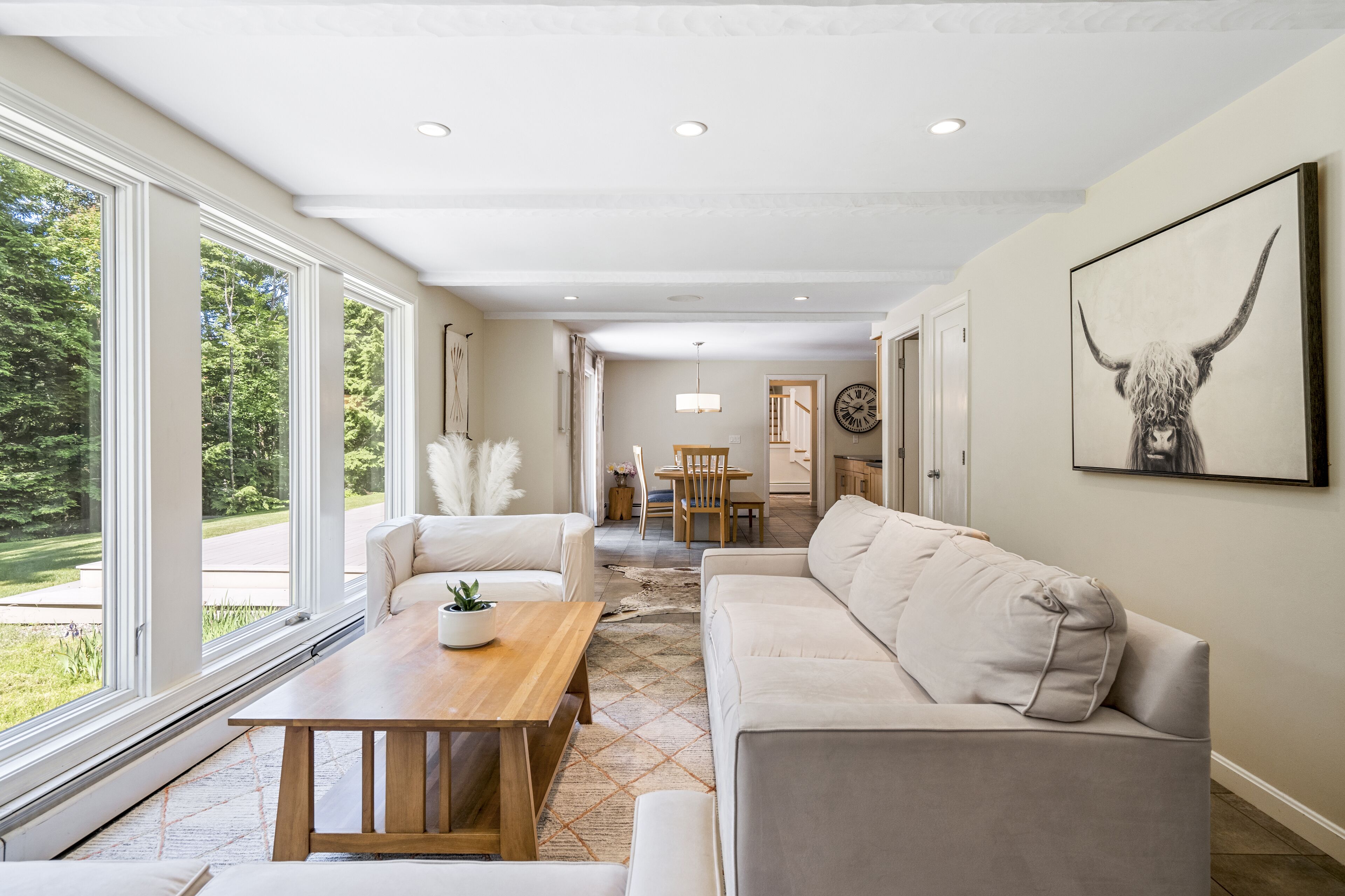 This house is ideally located on the Danbury/Hill line and sits in the middle between Ragged Mountain (5 miles south) and Newfound Lake (8 miles north). Although you are tucked away in the woods, Hannaford’s, Rite Aid and Bristol’s adorable downtown is just 10 minutes away. Here are some details on this beautiful single floor, ranch-style getaway: