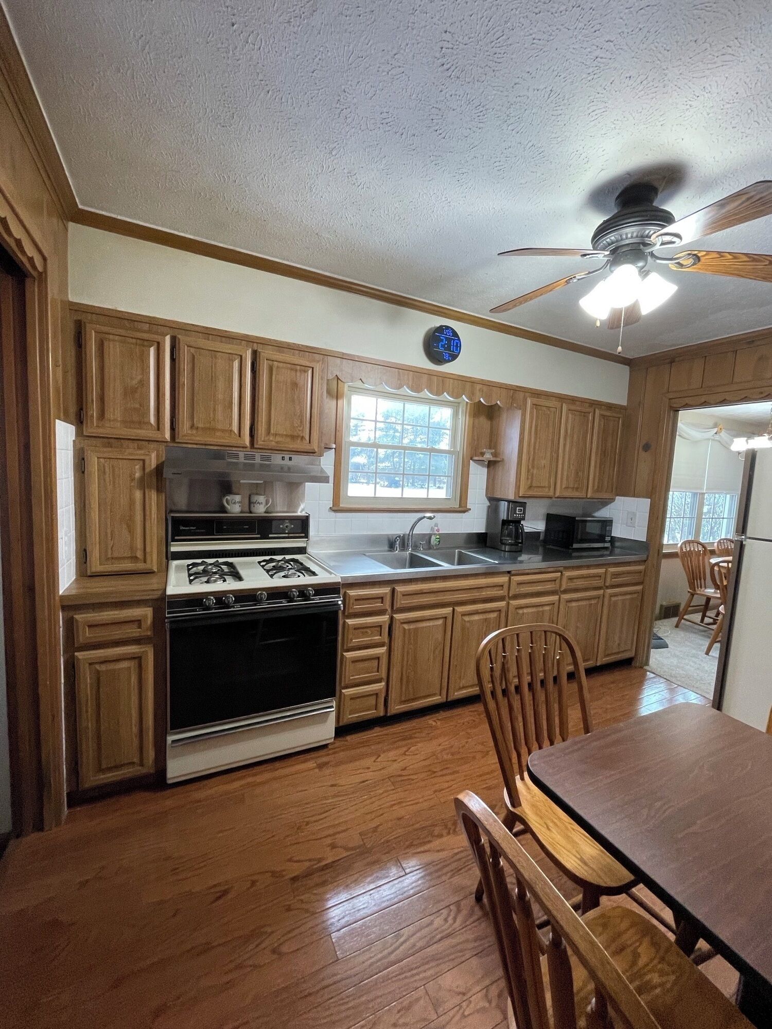 The kitchen table and island bar are available for meals or the dining room table may be used. Microwave, stove and refrigerator may also be used.