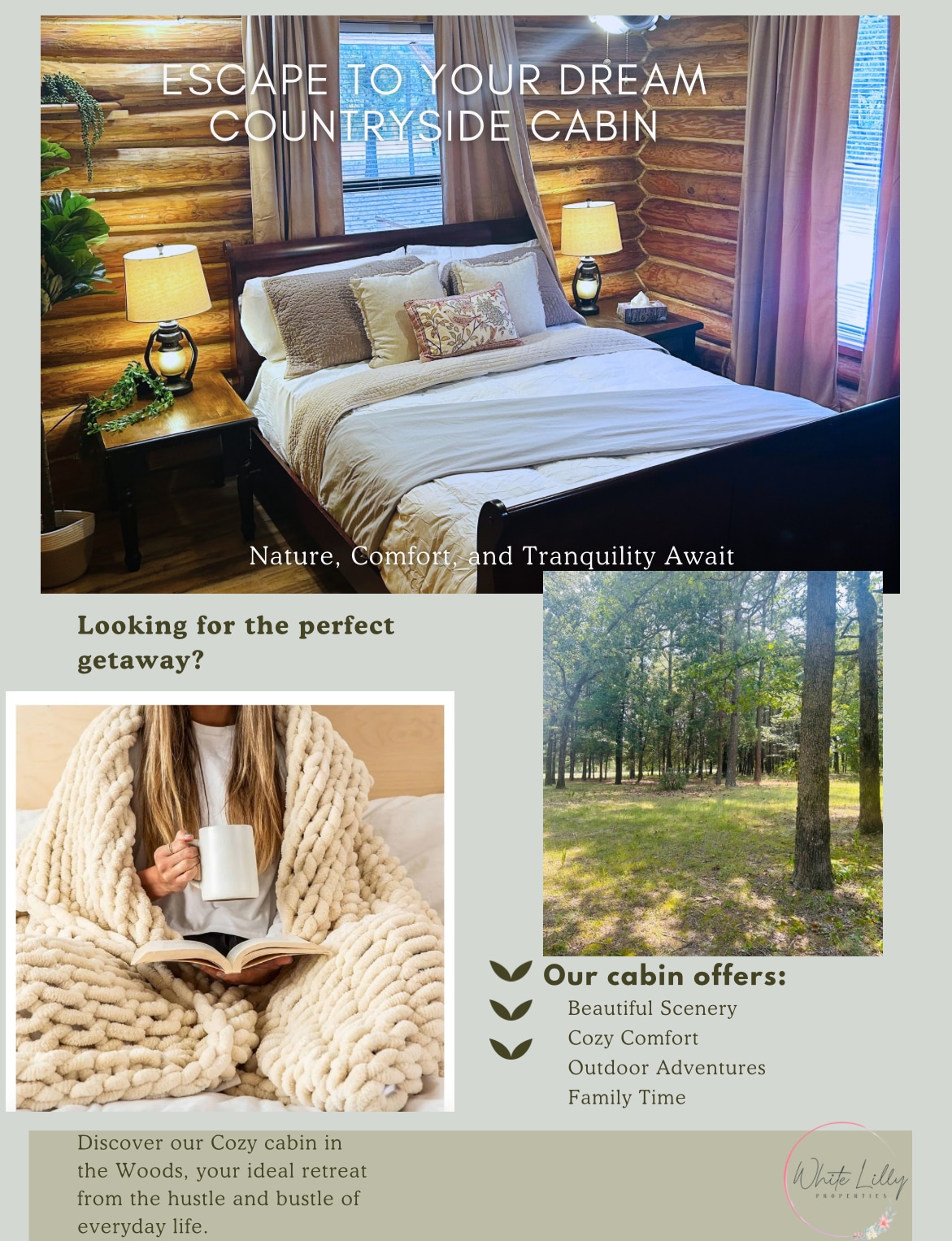 - "Excellent. Cannot wait to book this again. This time to explore the area more" - "Enjoyed cabin , very neat inside and out."
