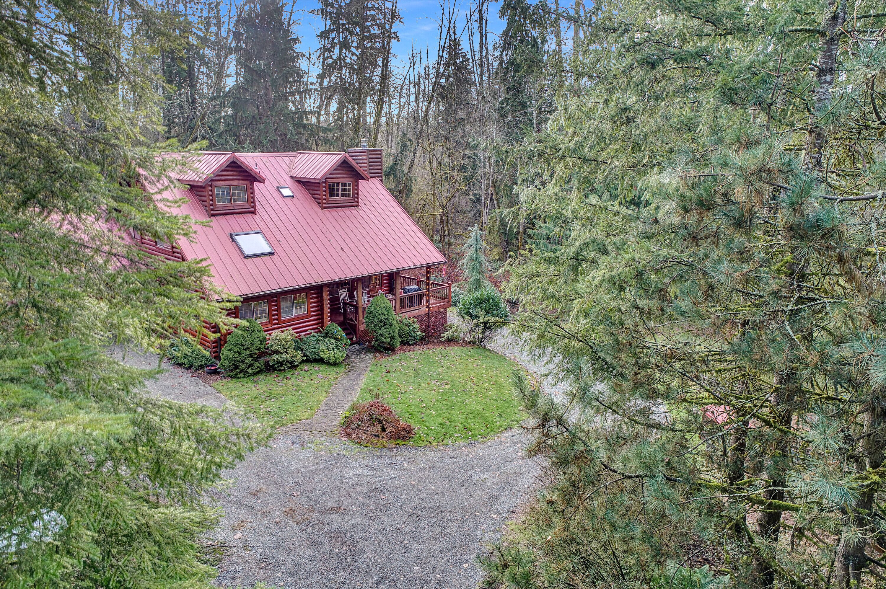 The cabin is located in a residential area on a dead end street on the upstream end of town. The nearest homes are separated by the width of the streets ensuring your privacy. There are no other homes upstream on the river side of the street, ensuring unobstructed views of the river, forest, and viewing the peaks of the Wild Sky Wilderness Area that makes up the eastern horizon.