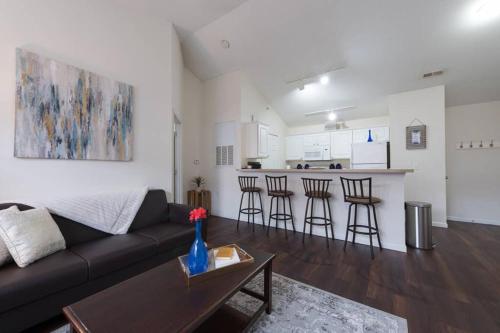 The home features a spacious master bedroom with a king size bed, a second bedroom with a queen size, and a third bedroom with a full size bed. All bedrooms and the living room are equipped with smart TVs or smart sticks, so you can easily stream your favorite shows and movies. The full eat-in kitchen comes with a dining table, perfect for meals with your group. There is also a dedicated workspace and fast WiFi for those traveling professionals. Plus, there is a spacious common bathroom with a large walk-in shower. Don't miss out on the opportunity to relax and make lasting memories in this wonderful home.