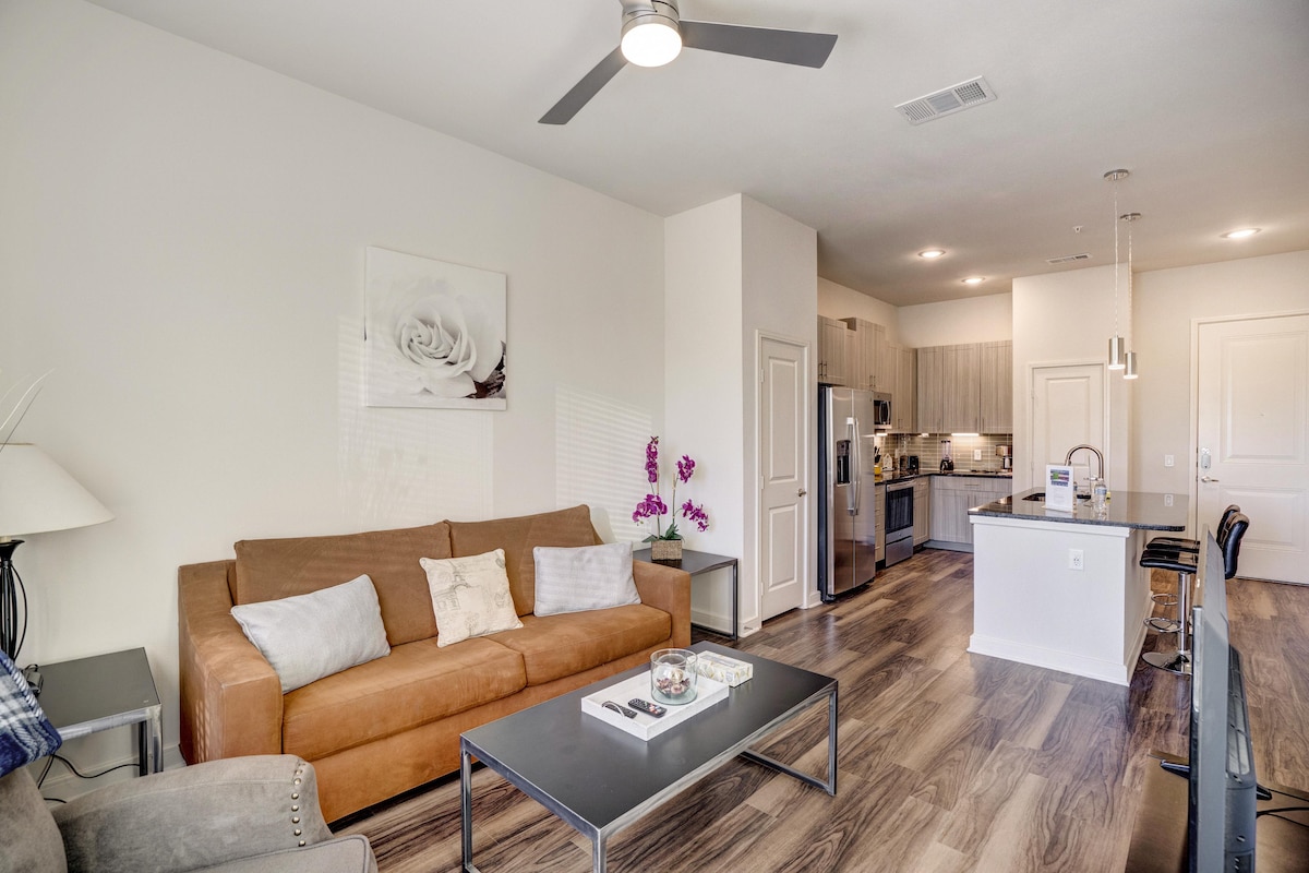 Sophisticated 1BR/1BA North Dallas Apartment with central location near Addison/Plano. Beautifully appointed space perfect for professional stays and family visits. Pet-friendly (1 max, fees and restrictions apply)