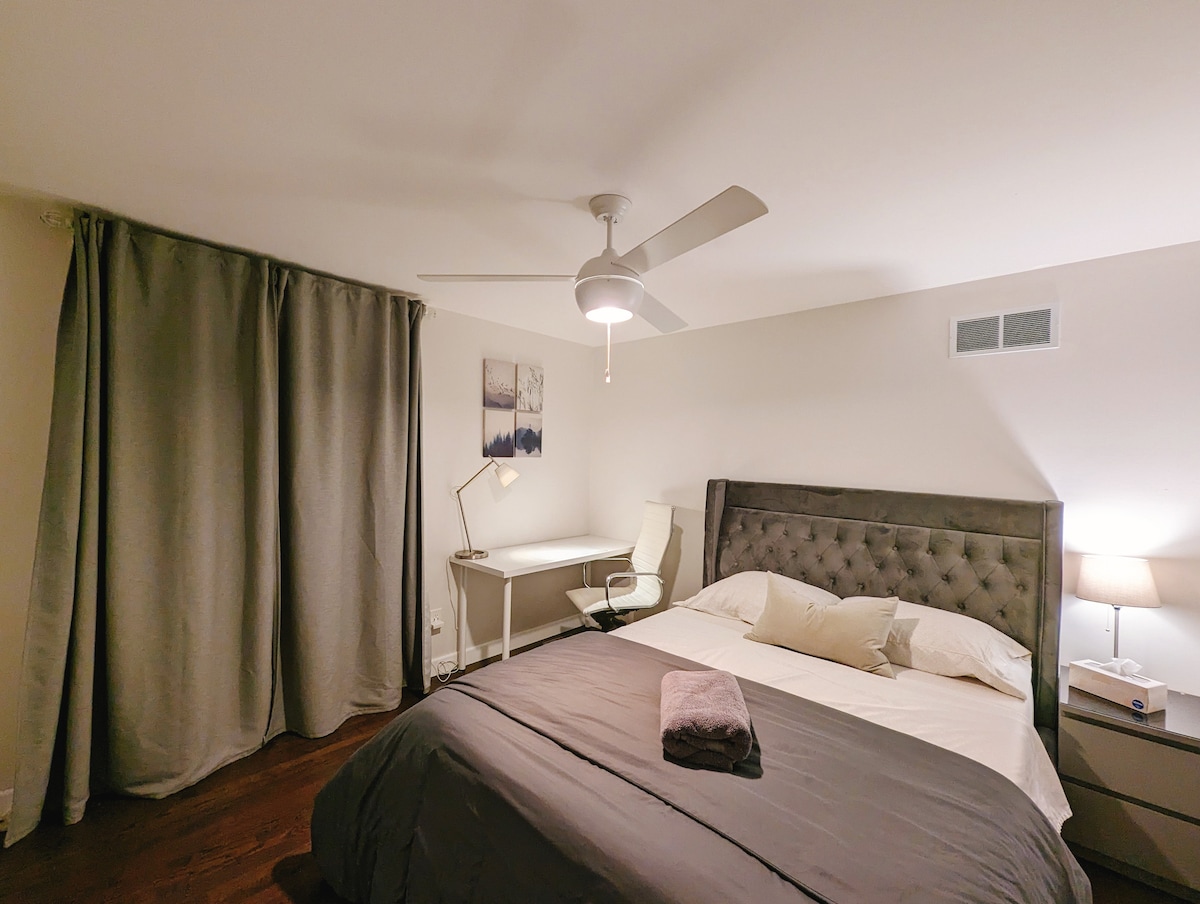 The listing is for the ENTIRE LOWER LEVEL SUITE ONLY. Well furnished and equipped for your stay. Can sleep upto 4 to 5 guests.