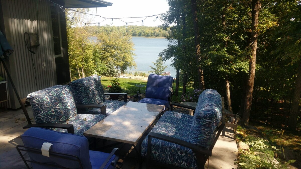 In summer, you can swim, toss bean bags on the patio, go fishing, kayaking, canoeing, sit on the private, sandy beach, have bonfires by the shore, or just relax on one of the patios or the dock. You can enjoy sitting by a fire on the charming patio overlooking the lake. There are comfortable seating areas and a hammock on three patios and all throughout the yard for your enjoyment and relaxation! Because the lake does not have public access, there is very little boat traffic. Its a very peaceful place! There are many walking trails in the woods. There may be bikes available to use. Sometimes they have been broken by guests and we are not always able to fix them immediately, so they may or may not be available during your stay.