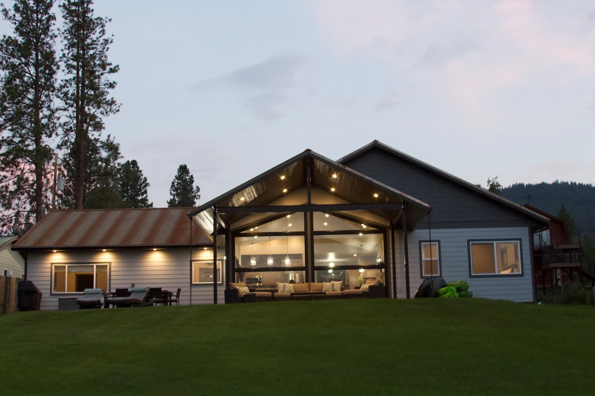 Our Montana home is seasonally available for rent from June through mid-Sept. This waterfront home has huge windows that bring in the morning light and wonderful sweeping mountain views of the Mission Range. The house has a very large wrap-around deck with a gas barbecue.
