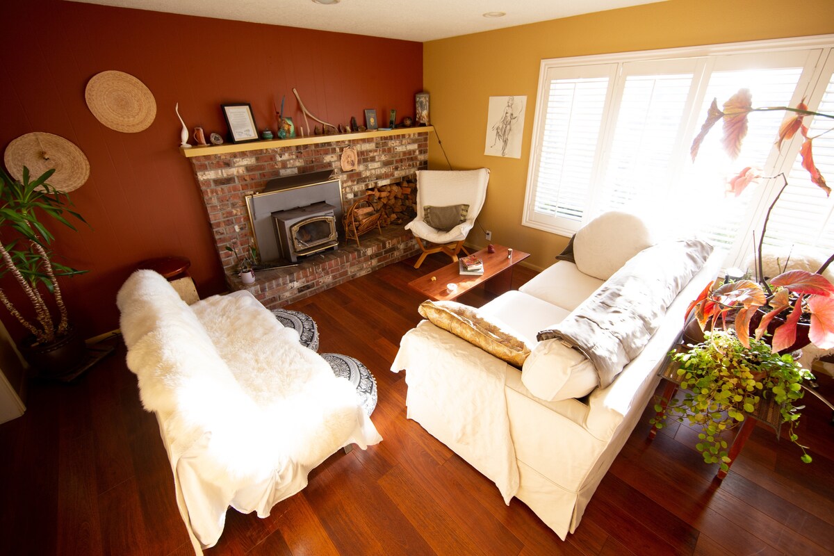 This home has been a center for healing and has many unique features including a heated clay floor embedded with Jade in one of the bedrooms, a cozy wood stove in the living room, a yoga studio that heats up quickly (around 105 degrees for hot yoga :-), an outdoor sauna, hot/cold shower and cedar Japanese hot soaking tub, as well as garden beds in the front that are producing some fruit and veggies seasonally. These are some of the reasons we call Suniai a Sanctuary. All of this and you’re just a short walk to Old Town and the river.