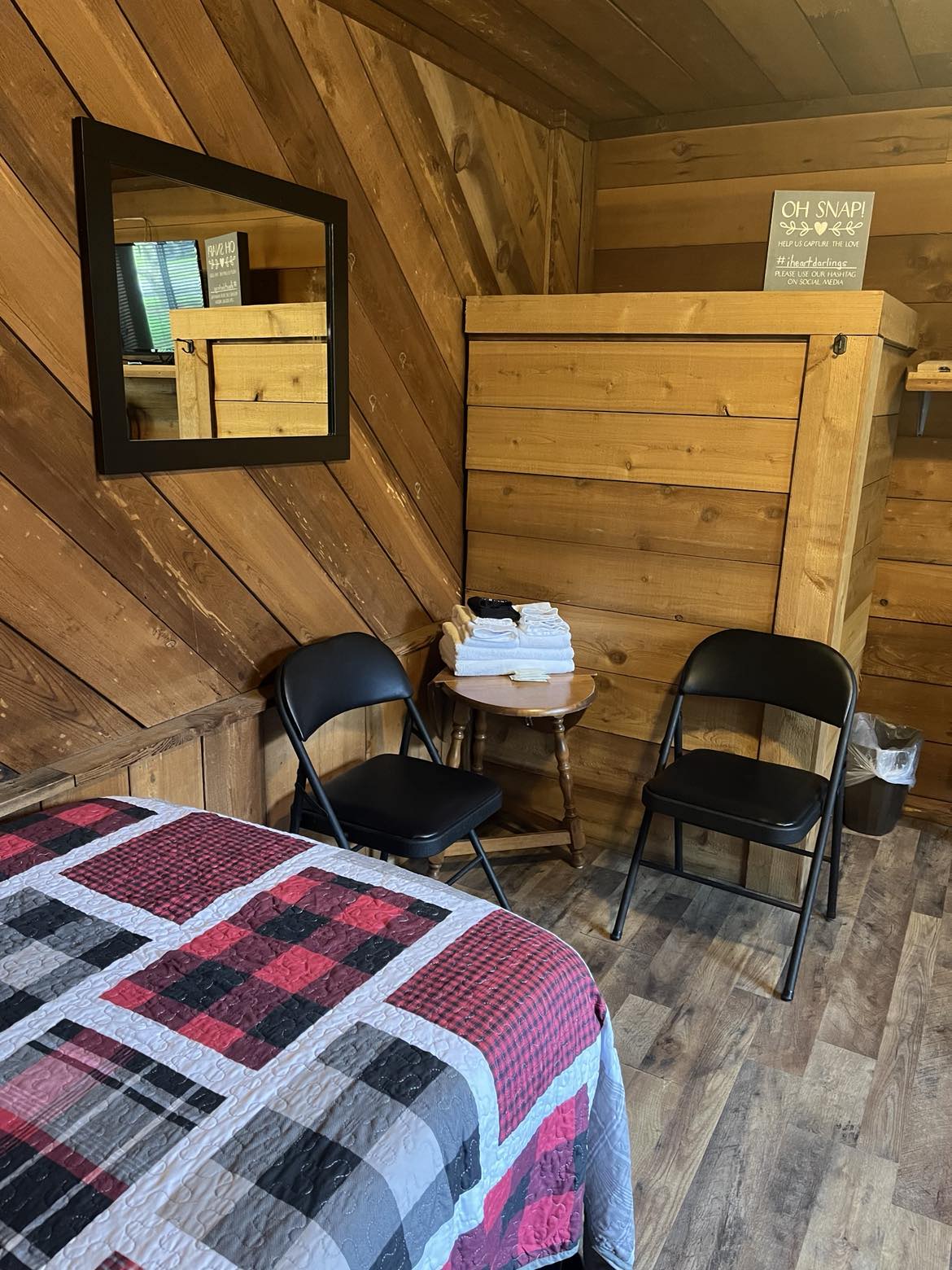 The queen bed is equipped with organic cotton sheets, a three inch memory foam topper and plush bedding. Though the bathroom is extremely small and the shower barely allows room for a full size adult, you will find extra towels and toiletries for use. The space is small, cozy and a good fit for a couple of people that like to be near each other.