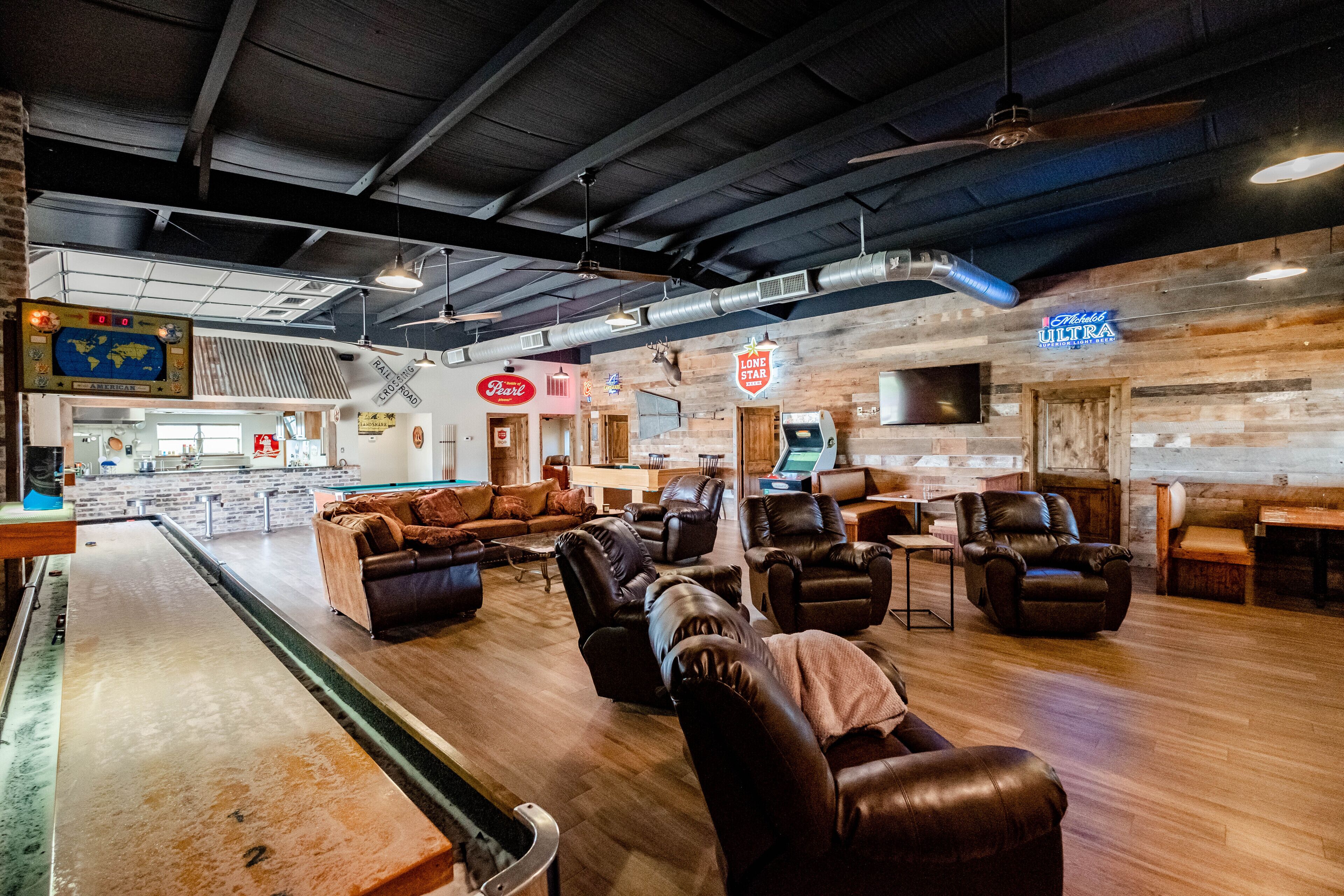 Only 5 miles from he boat ramp at Lake Alan Henry, this unique place offers everything you need! A fully functioning commercial kitchen, 7 big screen TVs, a firepit, shuffleboard, pool table, craps table and plenty of room to lounge around after a day on the water!
