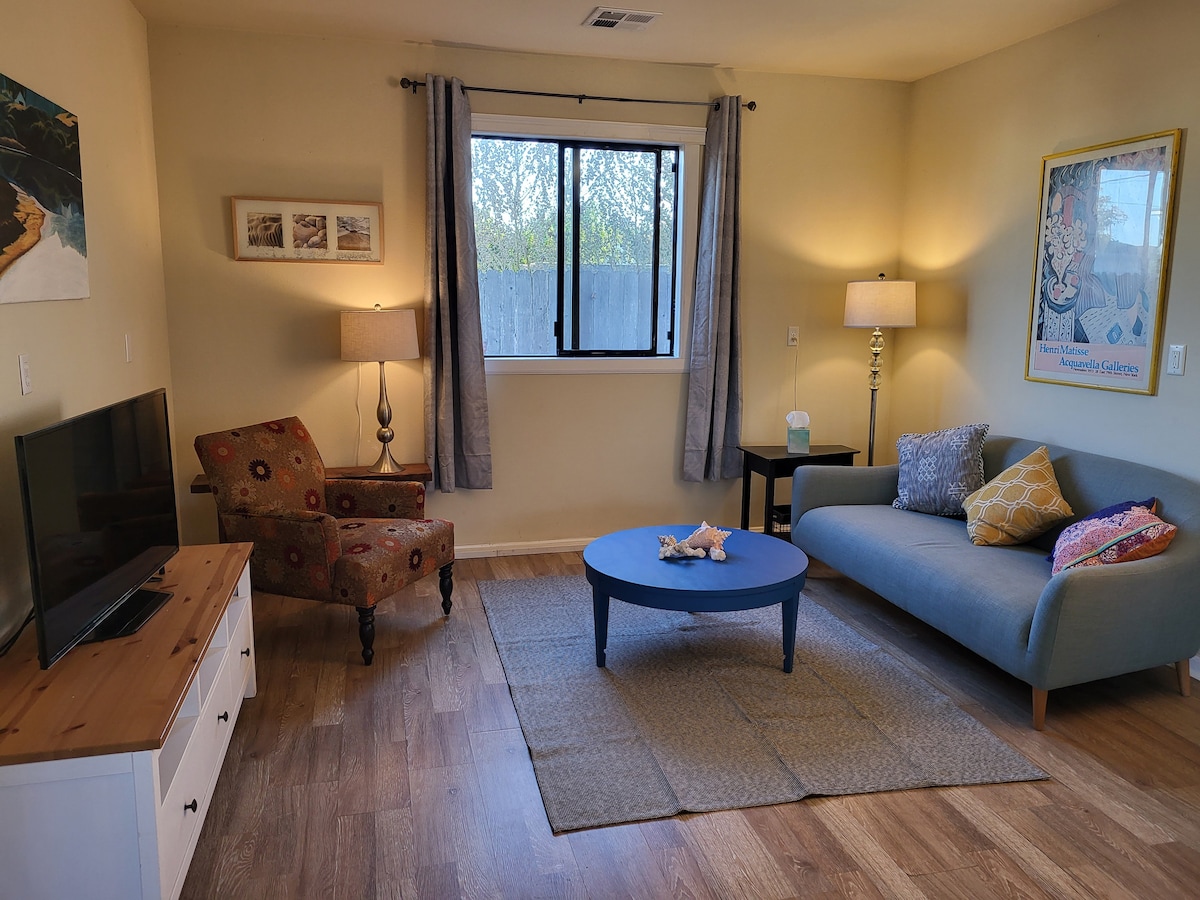 The garden and patio are available to enjoy and are shared by the main house. Feel free to light a fire and enjoy the sounds of the ocean. Only steps away from the beautiful Pacific Ocean.