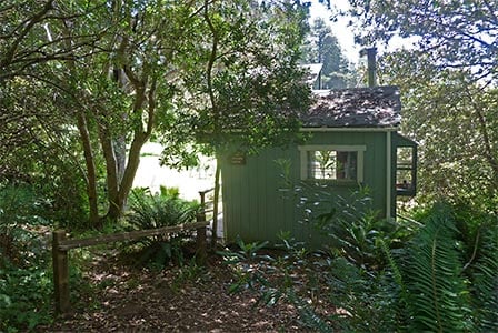 This 1 bedroom cabin is situated on 13 acres of a homestead that dates back to the 1800. It's looks out over an apple orchard, fields and is surrounded by large redwoods.