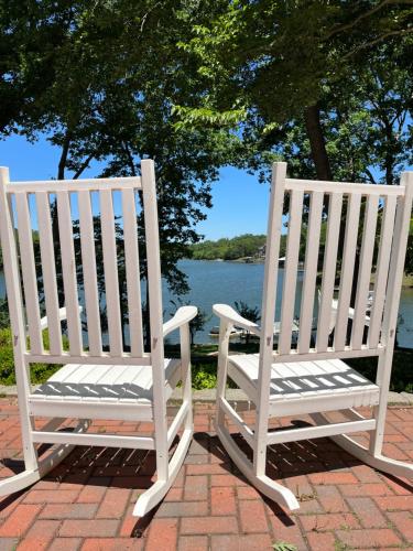 Guests are encouraged to use the white double decker dock, rocking chairs, hammock, backyard, porch and courtyard area.