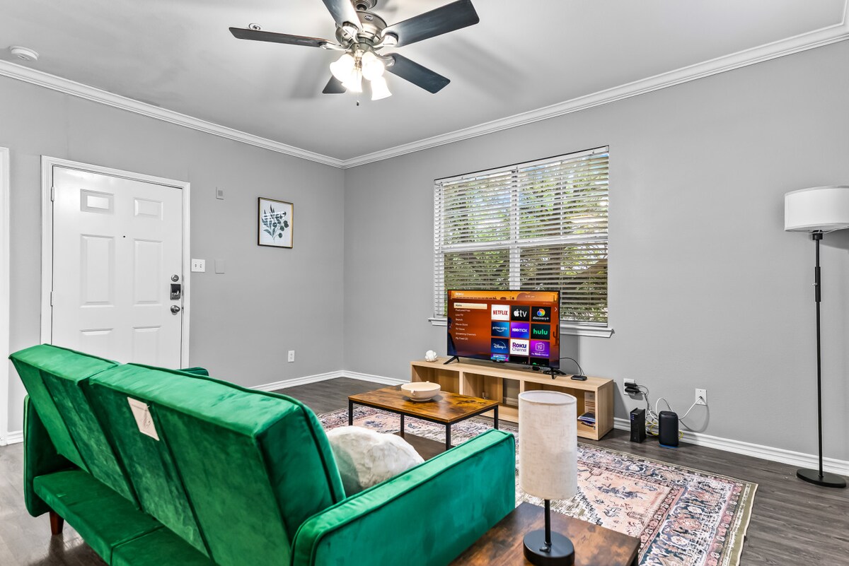 This charming flat is perfect for travelers of all kinds! Located in Fort Worth, this space is only few miles away from Dowtown, The Fort Worth Stockyards, TCU, and MUCH MORE. An updated kitchen with cooking utensils and other amenities will make your stay here seamless. With easy access to the highway, and surrounded by many unique restaurants and shops, this apartment has all the needs for a relaxing getaway or a temporary home away from home! The pool and hot tub are sure to please!