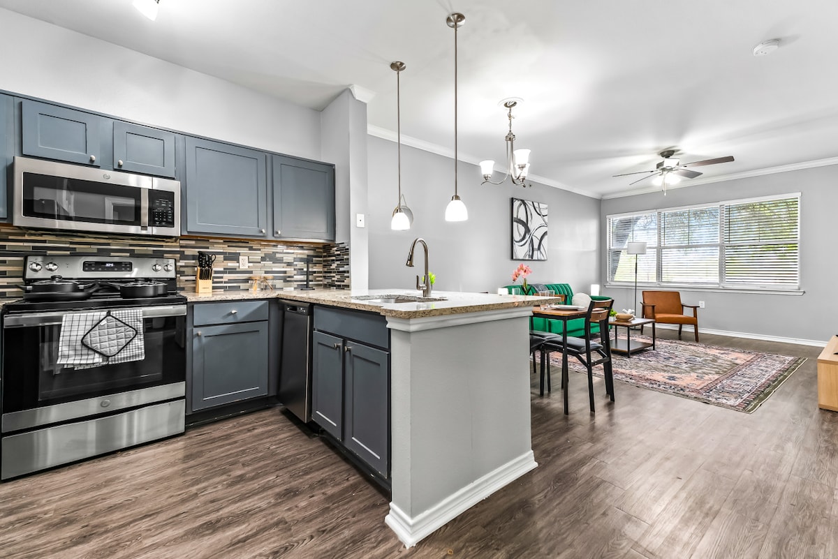 Settle into laid-back living at Ranch at Fossil Creek, just north of Fort Worth. Perfect for flexible stays, each fully-furnished apartment features a full kitchen with granite countertops, stainless steel appliances, in-unit laundry, and fast WiFi. Enjoy a 24-hour fitness center, a resort-style pool, billiards, and a bark park with its own obstacle course. Located in Haltom City with quick access to I-820, you're just minutes from Fossil Creek Golf Club, the Stockyards, Trinity Trails, and more.