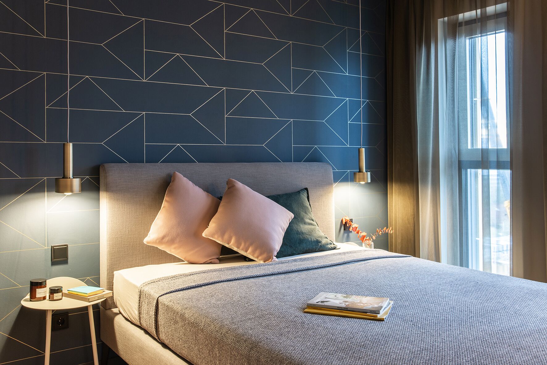 Atmosphere to the max: In the Medium apartment, living, sleeping, working, kitchen and dining areas are harmoniously and generously integrated into an open floor plan. Full development for discerning business guests and couples. Tailor-made fittings, design wallpapers and the selected furnishings from Vitra, Muuto, KFF, Hay, Fermliving, the designer kitchen and the 160cm bed from Möller-Design are skillfully integrated. The sofa + lounge chair complete this comfortable unit. Modern technology - from high-speed WiFi, Bluetooth box to flat-screen TV - also relaxes living and working.