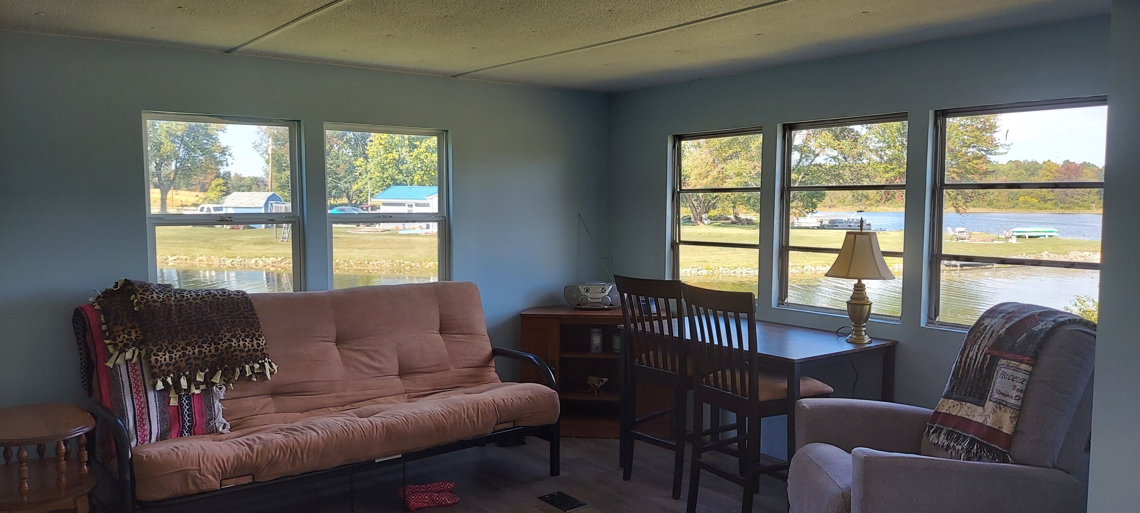 The cottage is the perfect relaxing retreat for a family or avid fishermen who plan to spend most of their time outdoors and on the lake. Peace and quiet during the Fall and Spring is a fantastic time to visit and get away from the hustle and bustle! Take time to unwind! The cottage has a small but functional kitchen with stove, sink and refrigerator with a large round table that seats 8. Standard kitchen items included. Three bedrooms (2 with closet space) are charming with plenty of windows to let the breeze blow through. Two of the bedrooms offer lake views. Additional sleeping is available with a sofa sleeper bed. The single bathroom offers a remodeled feel with a shower only - no tub.
