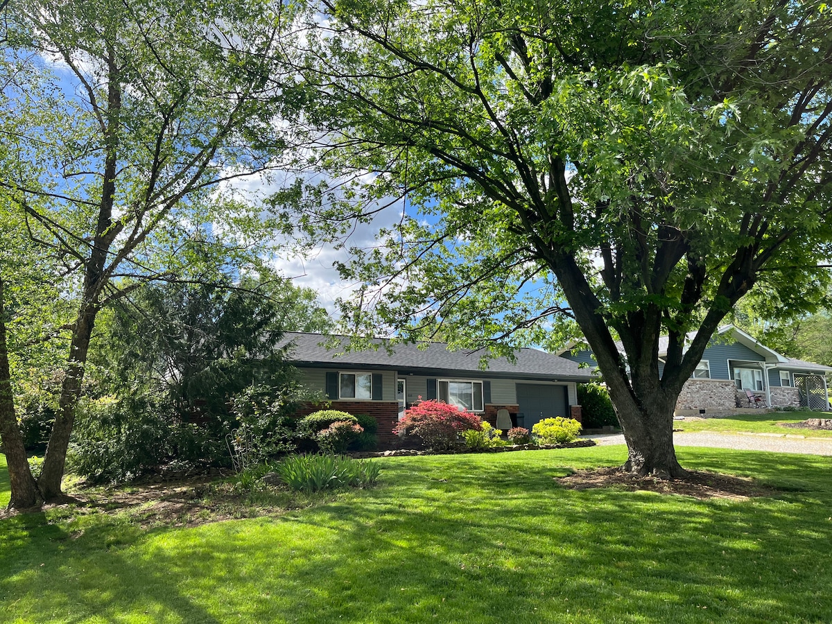 Surrounded by private wooded acreage where deer trot by the kitchen window. Front and back porches are great for bird watching and viewing the valley.