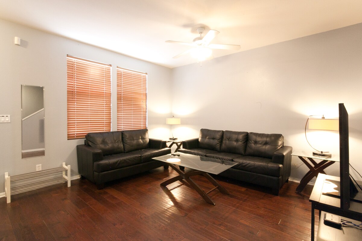 Quiet townhouse complex built in 2005. Close to downtown, public transport and freeway. Local big grocery market is 2 blocks from the complex. Our professional cleaning crew is onsite whenever guests check out, usually sometime between 11AM and 3PM. They will clean all the shared and common areas. If you see anything that needs cleaning please let them know, we want to keep the place sparkling clean for your comfort :-)