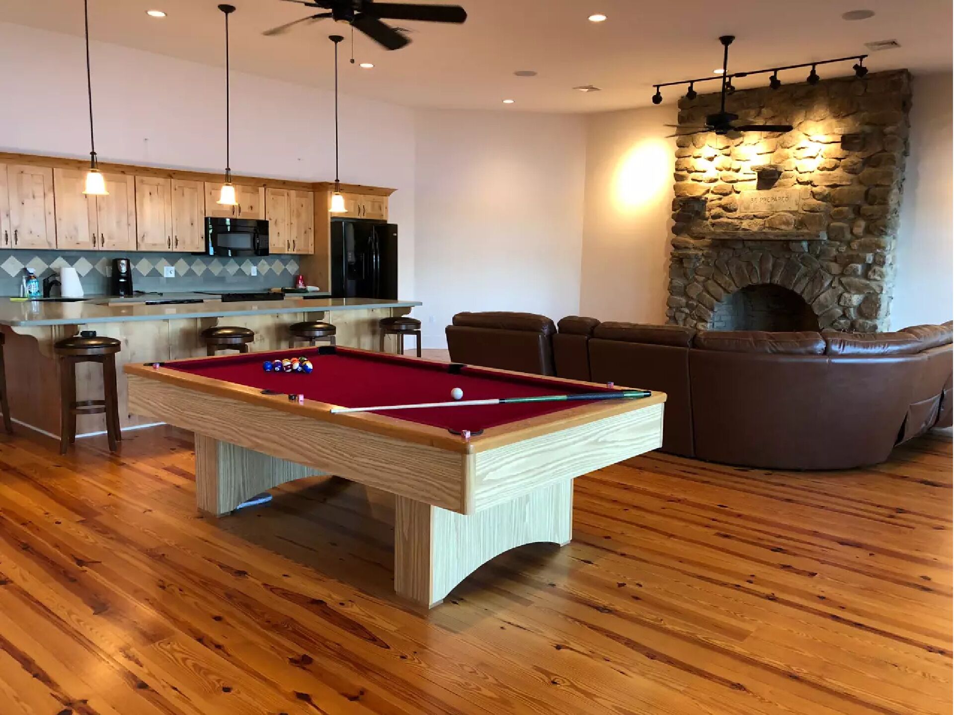 Downstairs there is a game room with a pool table, big buck hunter, foosball, TV, karaoke, wii, and various wall games. (full list of games below).