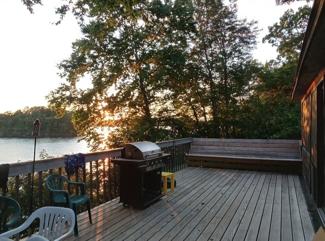The large two tiered deck has a hard top gazebo with an outdoor couch and propane fire pit on the lower level (propane is provided), and the upper level has a dining table in the summer and the heated igloo in the winter time (from November 1st until April 15). There is also a propane grill on the deck (propane is provided).
