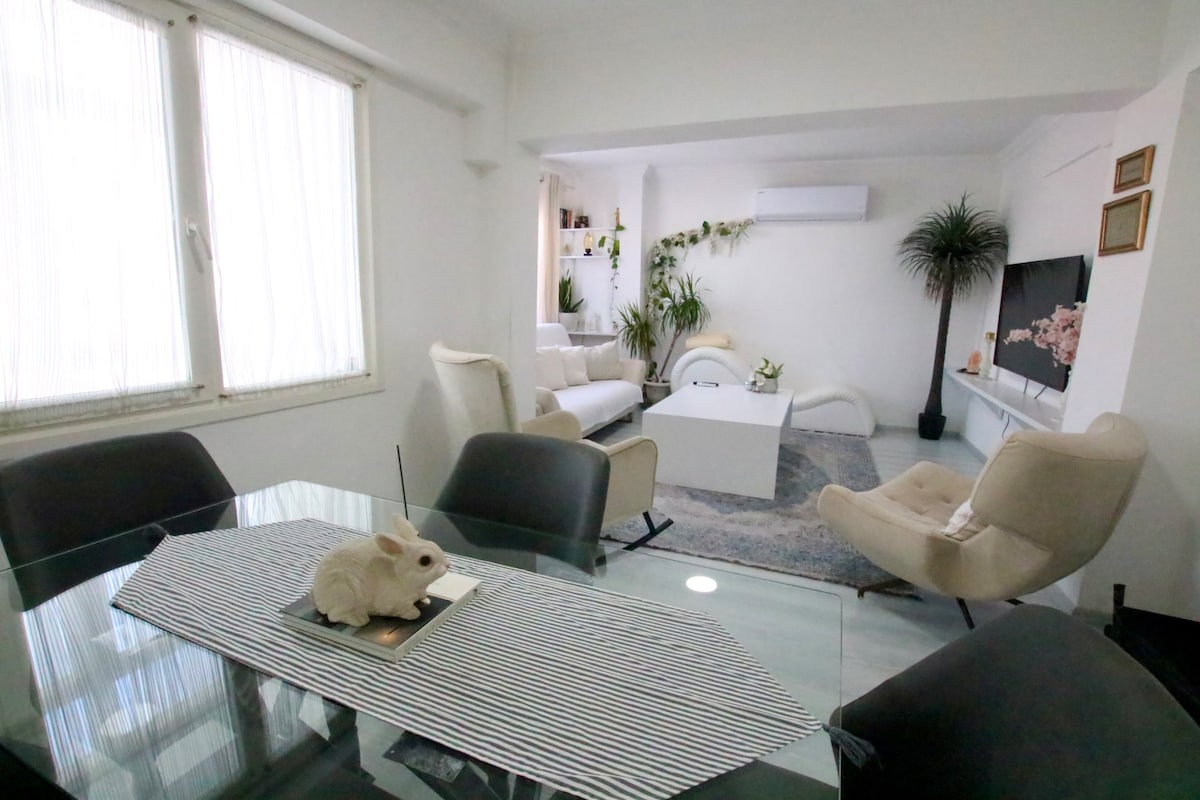 It is very easy at check-in and check-out. There are encrypted boxes on the exterior, I give you the special password of your apartment on the day of check-in, and you leave it in the same box when you leave. Our homes are cleaned in great detail and deserve an ultra star.