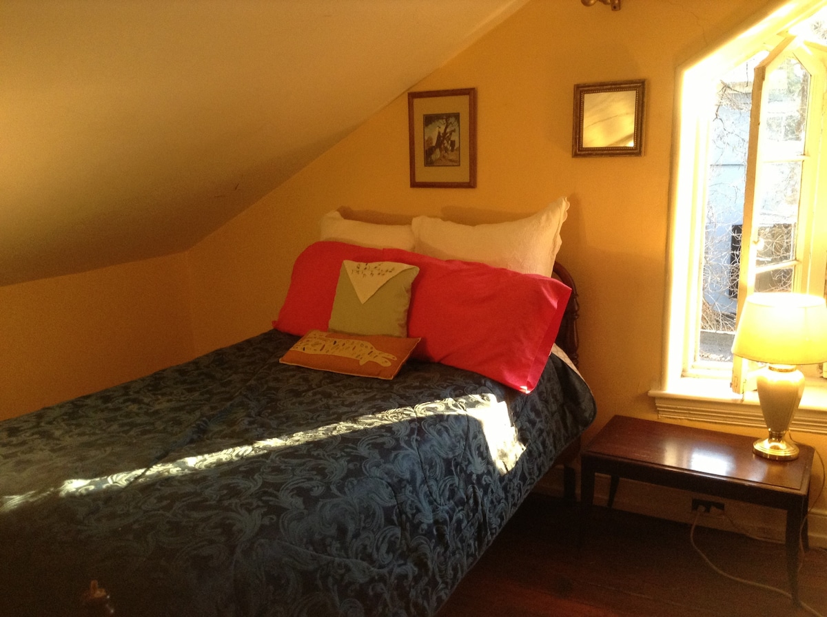 The Franklin Room, located on the 3rd floor of our BnB, is a serene and cozy private room which features a very comfortable Full Size Bed, a window air conditioner, gas heat, 32" Flat Screen Cable HD TV, high speed Wi-Fi throughout the house, beautiful original hardwood floors, desk & chair, clock radio, in-room bottled water, fresh linens, extra towels, extra blanket & pillow and plenty of closet space.