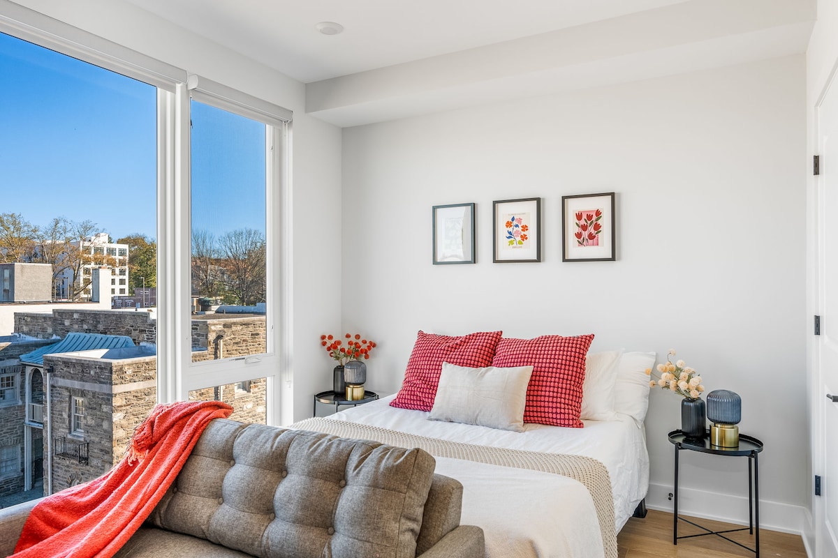Modern studio apartment in brand new building in West Germantown. Amenities include elevator, common study area, resident lounge, fitness center, tenant bicycle storage, roof deck with green roof. On-site parking available. Twenty-four security. Keyless entry.