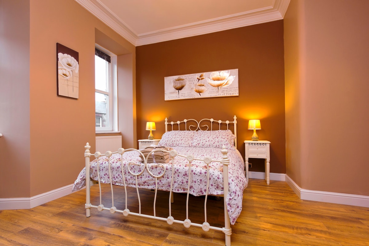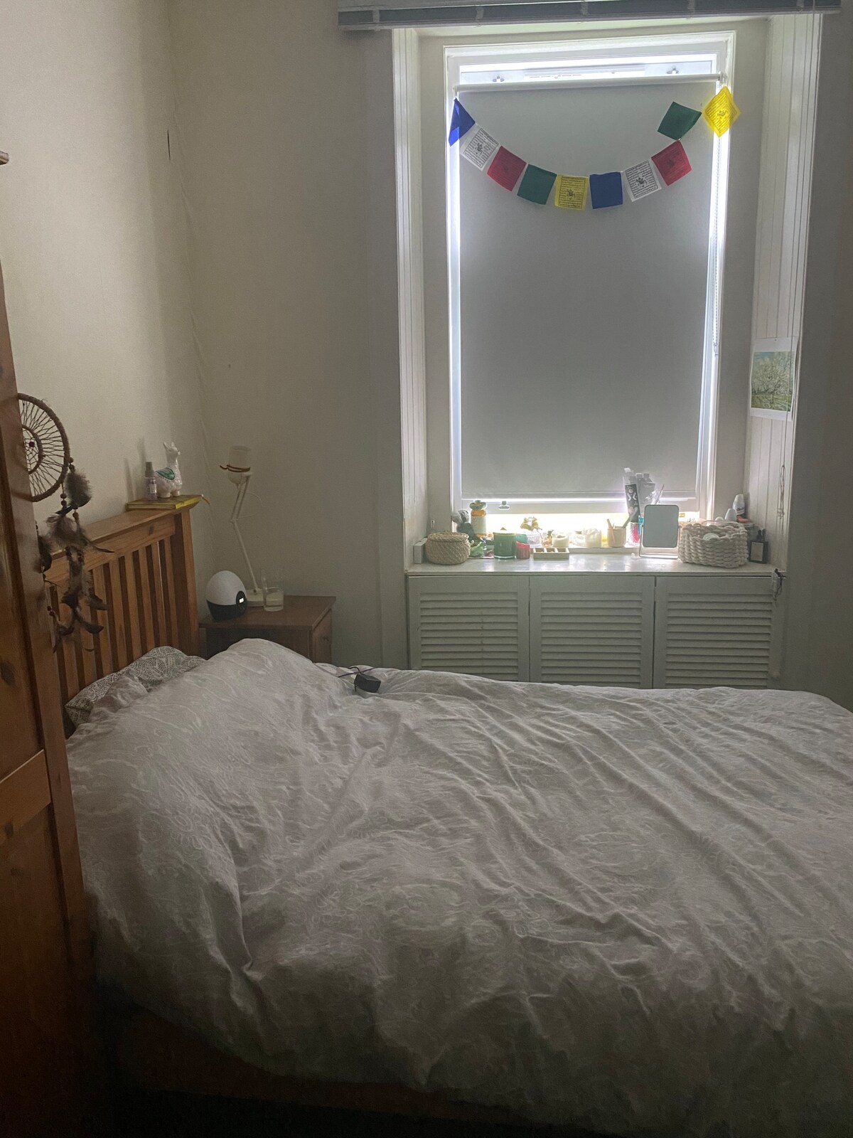 The flat is very central whilst being peaceful and quiet too. Your room has a relaxed, Scottish highland vibe to it. It gets plenty of natural light through the day but has a blackout blind with curtains too, so you can have it as dark as you like for sleeping. It features a double bed with a memory foam mattress. Trust me - it is super-comfortable! There is a desk/dresser with drawers for you to get ready for a night on the town or to work/study. There is plenty of storage with a wardrobe including drawers for your use and also two bedside cabinets. A hair-dryer is kept in the room for you to use and you will be provided with clean bed-linen and towels.