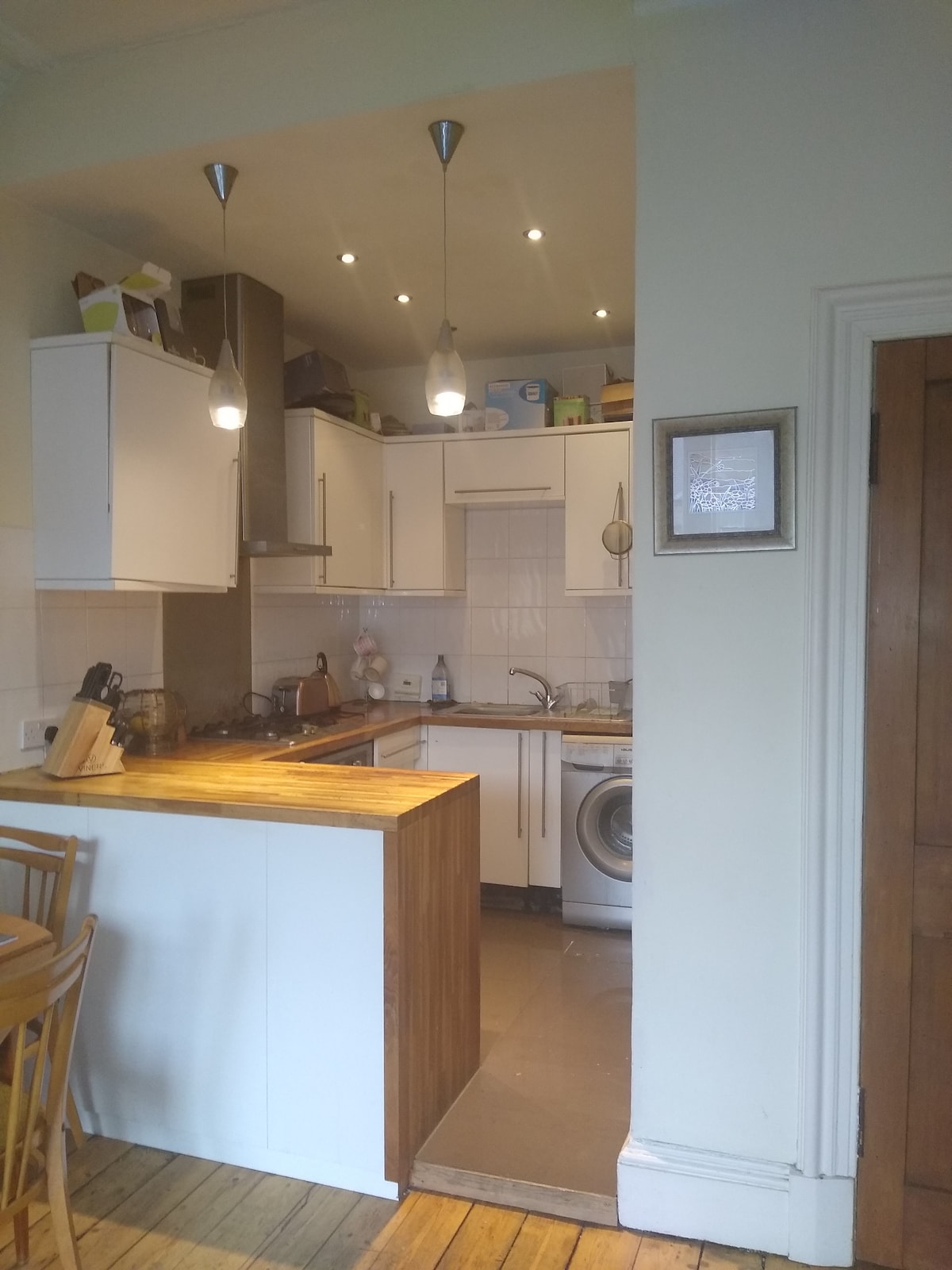The kitchen has a toaster, washing machine, kettle and microwave for you to use but guests are NOT PERMITTED TO COOK in the flat.