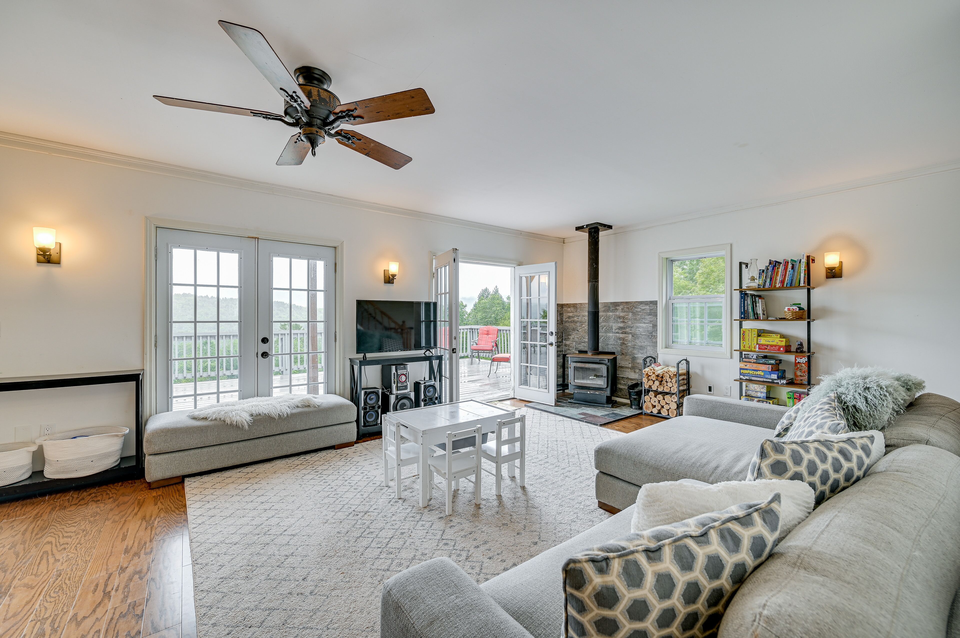 Other amenities: 2 Smart TVs, board games, karaoke microphone, Alexa & Bose wireless speaker, Pack & Play, high chair, kids bowls & plates, central heating, high-speed wifi and complimentary firewood.