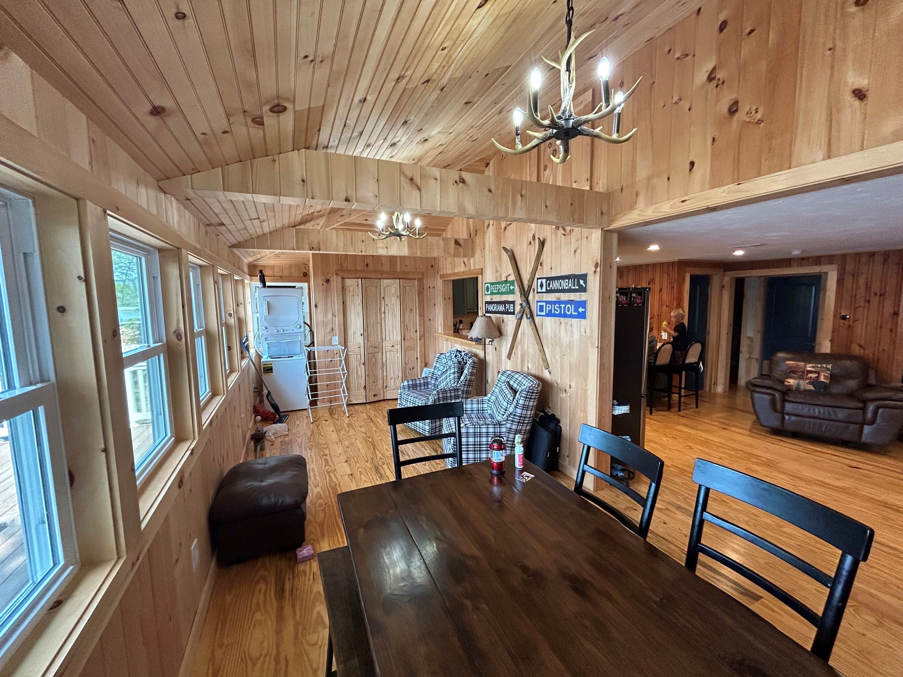 Escape to the lake and experience a getaway like no other at this large family-friendly home located directly on Manning Lake! Enjoy a prime location in a quiet setting - so quiet that loons regularly visit this place. This two-story home is a great summer vacation spot as you have direct access to the lake, a private dock, and four kayaks that you can launch into the water. It's also a convenient retreat for the winter with abundant trails nearby, ice fishing, etc.