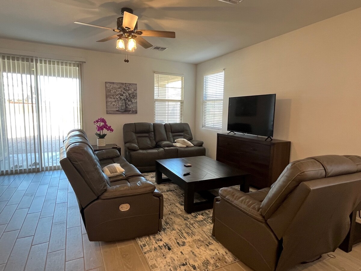 Newly built home at the heart of Goodyear. Private bedroom with private bathroom, bedroom w/ twin size mattress, luxury vinyl plank flooring, high ceiling fan. Work desk, Hi speed internet and 4K tv