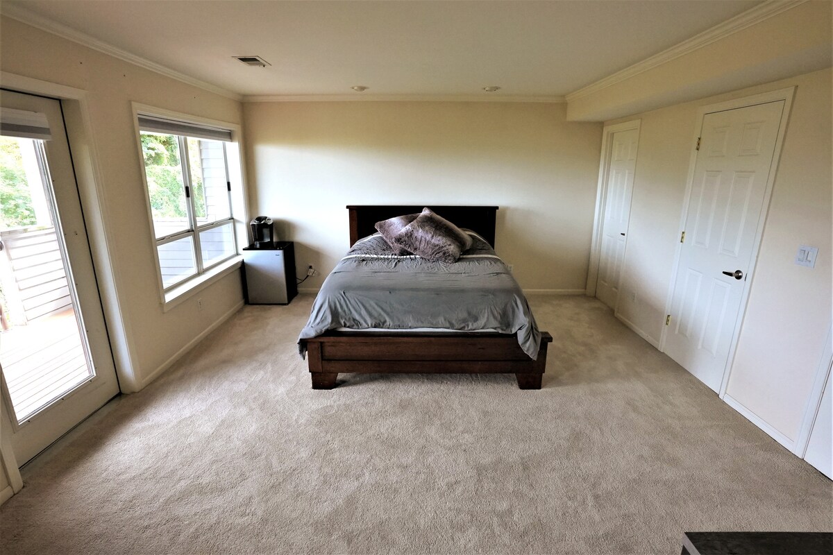 Private separate entrance and deck. Security alarm system and digital locks. Exterior security cameras.